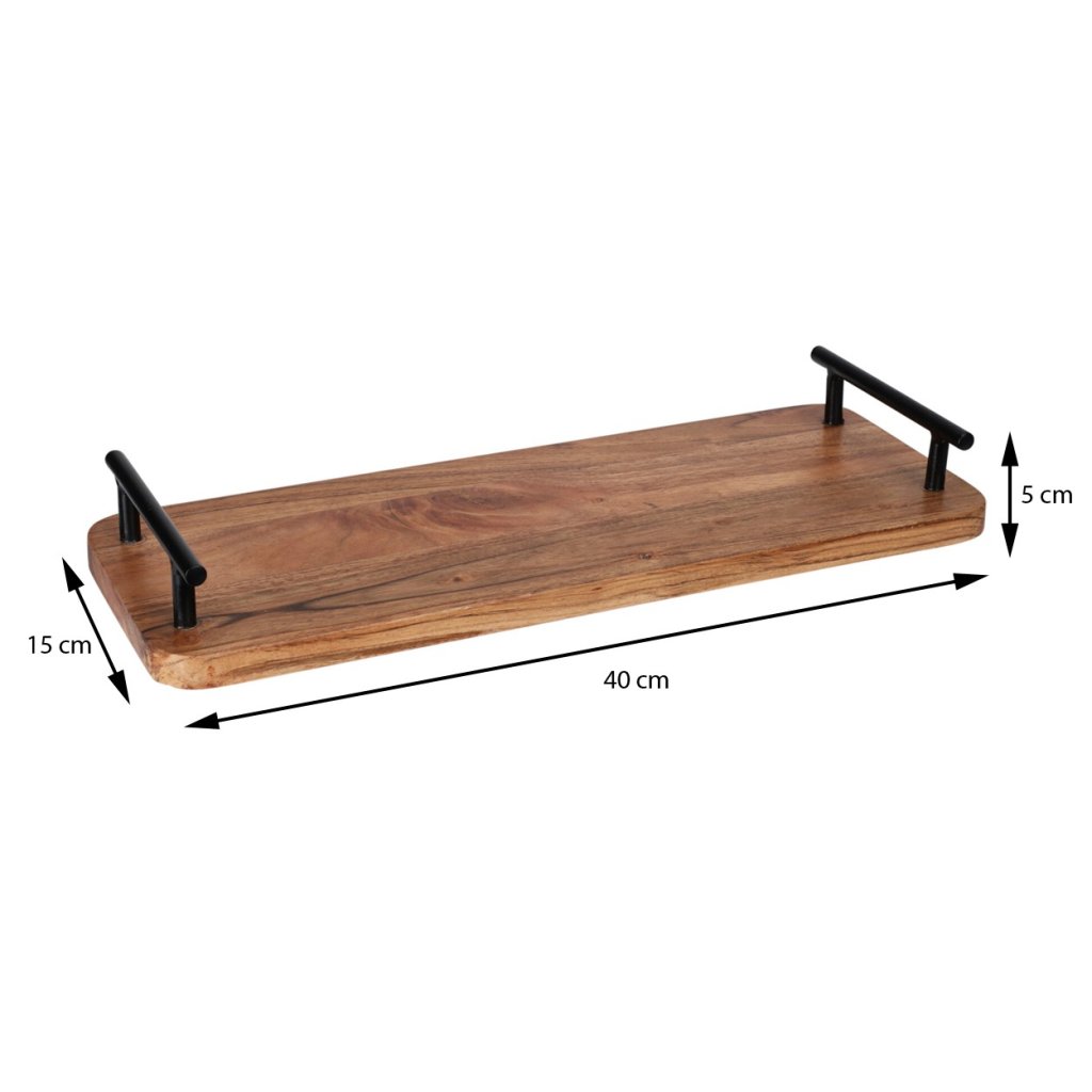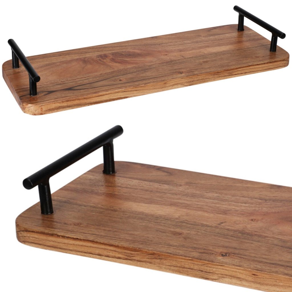 Ozdobný podnos s kovovými držadly z akáciového dřeva pro podávání různých druhů občerstvení, sýrů a uzenin. Ideální pro servírování občerstvení, dezertů, chleba nebo nápojů.Buďte první, kdo napíše příspěvek k této položce.