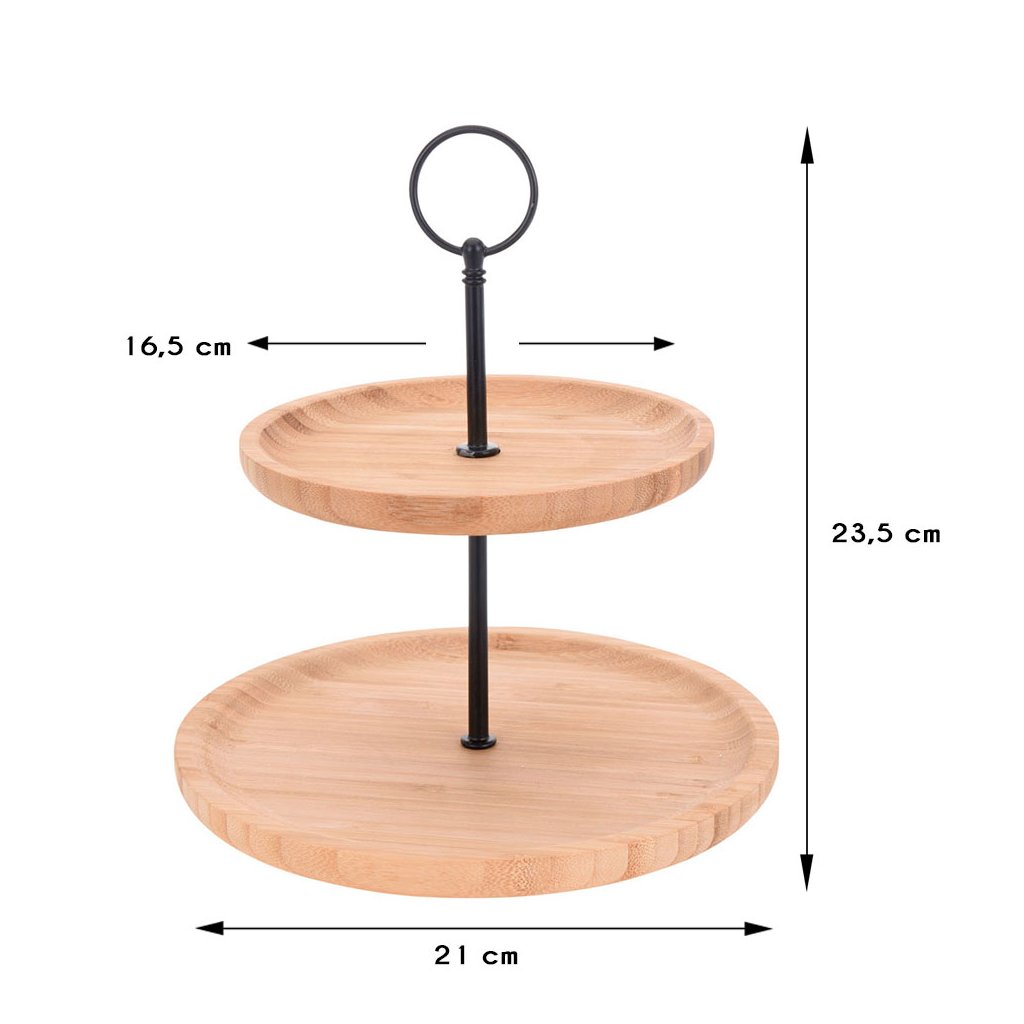 Elegantní vícepatrový stojan na koláče, ovoce a sladkosti. Podnos vyroben z bambusového vlákna. Bambus je bezpečná, odolná a elegantní surovina. Talíř je vybaven rukojetí pro přenášení.Velký talíř: (fi) 21,5 cm
