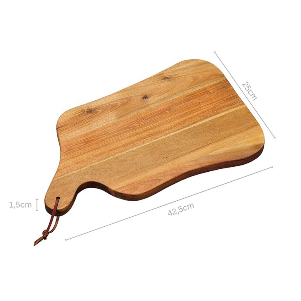Tato elegantní prkénka na krájení a servírování vyrobená z akáciového dřeva je praktickým a stylovým doplňkem do každé kuchyně. Deska vyrobená z přírodního akáciového dřeva s certifikátem FSC je nejen odolná, ale také ekologická. Trvanlivá, odolná vůči poškrábání, ekologická a bezpečná pro nože. Ideální pro krájení, přípravu a servírování jídel. Krásná, jedinečná struktura akáciového dřeva dává každému prknu jedinečný charakter.Doplňkové parametry