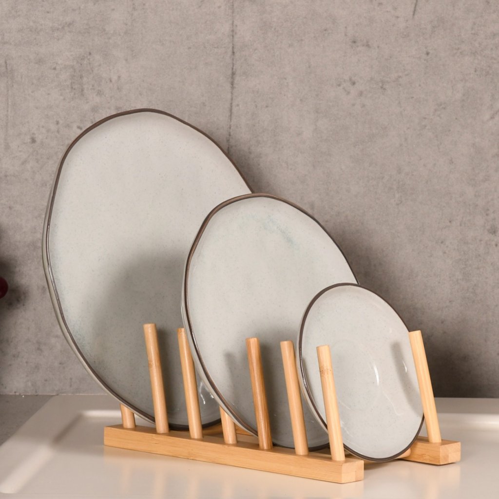Dřevěný stojan na talíře Bamboo, 25x14 cm