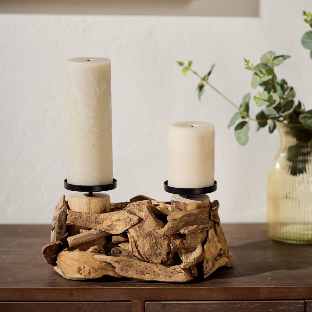 Dřevěný svícen Elijah z přírodního naplaveného dřeva je originální dekorační prvek , který vnáší do prostoru autenticitu, teplo a harmonickou atmosféru . Jeho ručně vytvořená syrová forma zaručuje, že každý kus je jedinečný - s přirozenou kresbou dřeva a nepravidelným tvarem, který působí rustikálně a zároveň umělecky.