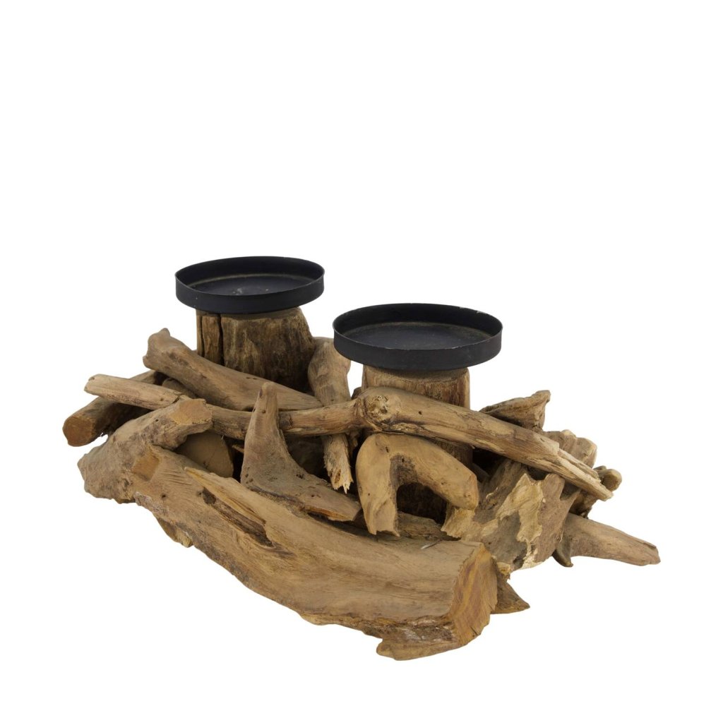 Dřevěný svícen Elijah, 14x32x31 cm, hnědá