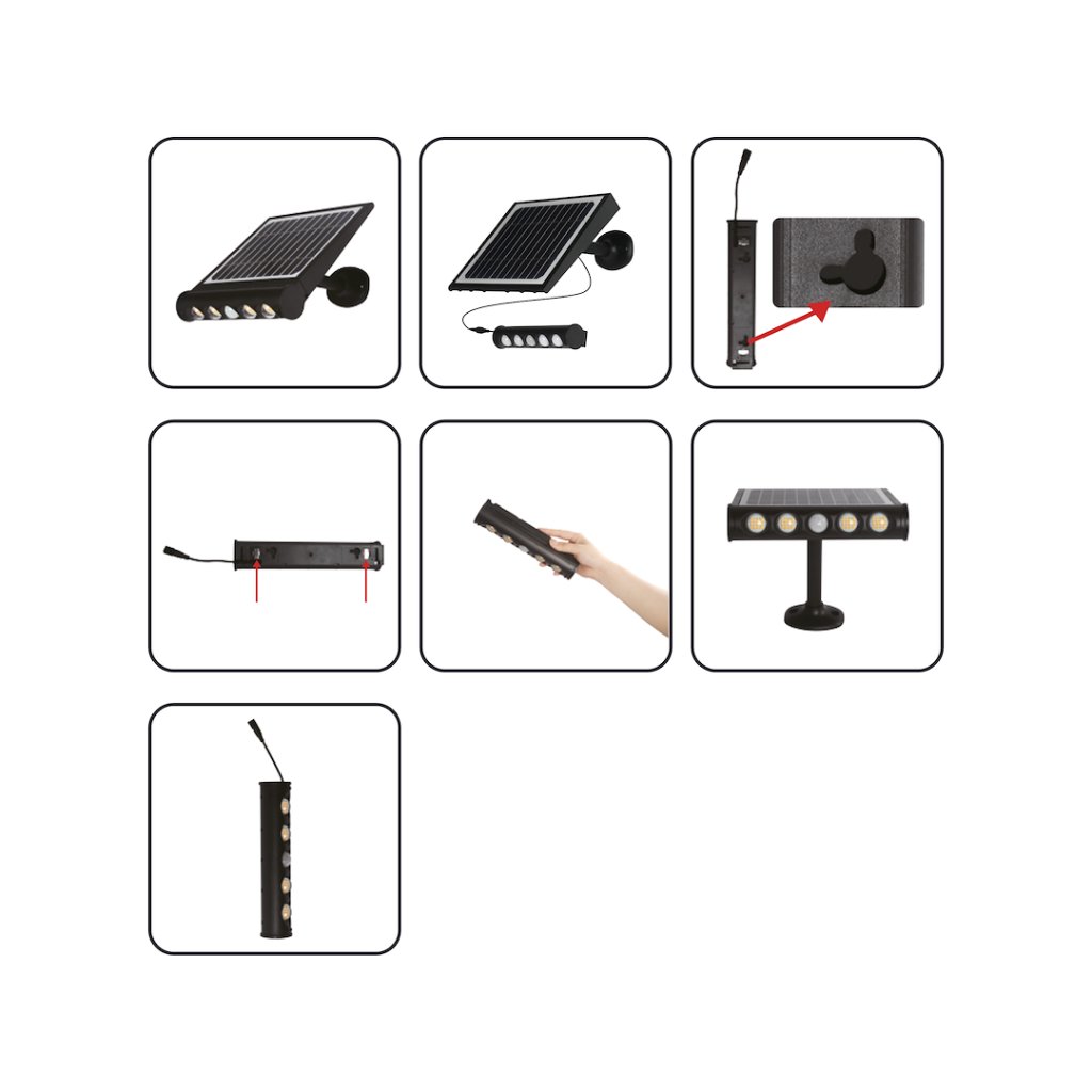 Exteriérové solární LED svítidlo Talent, 4x LED 8w, černá, pohybový senzor