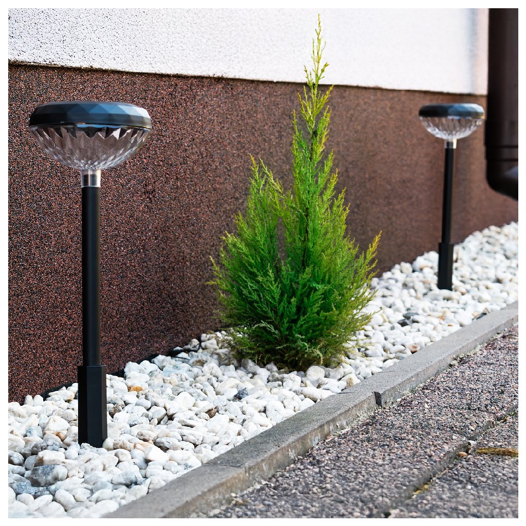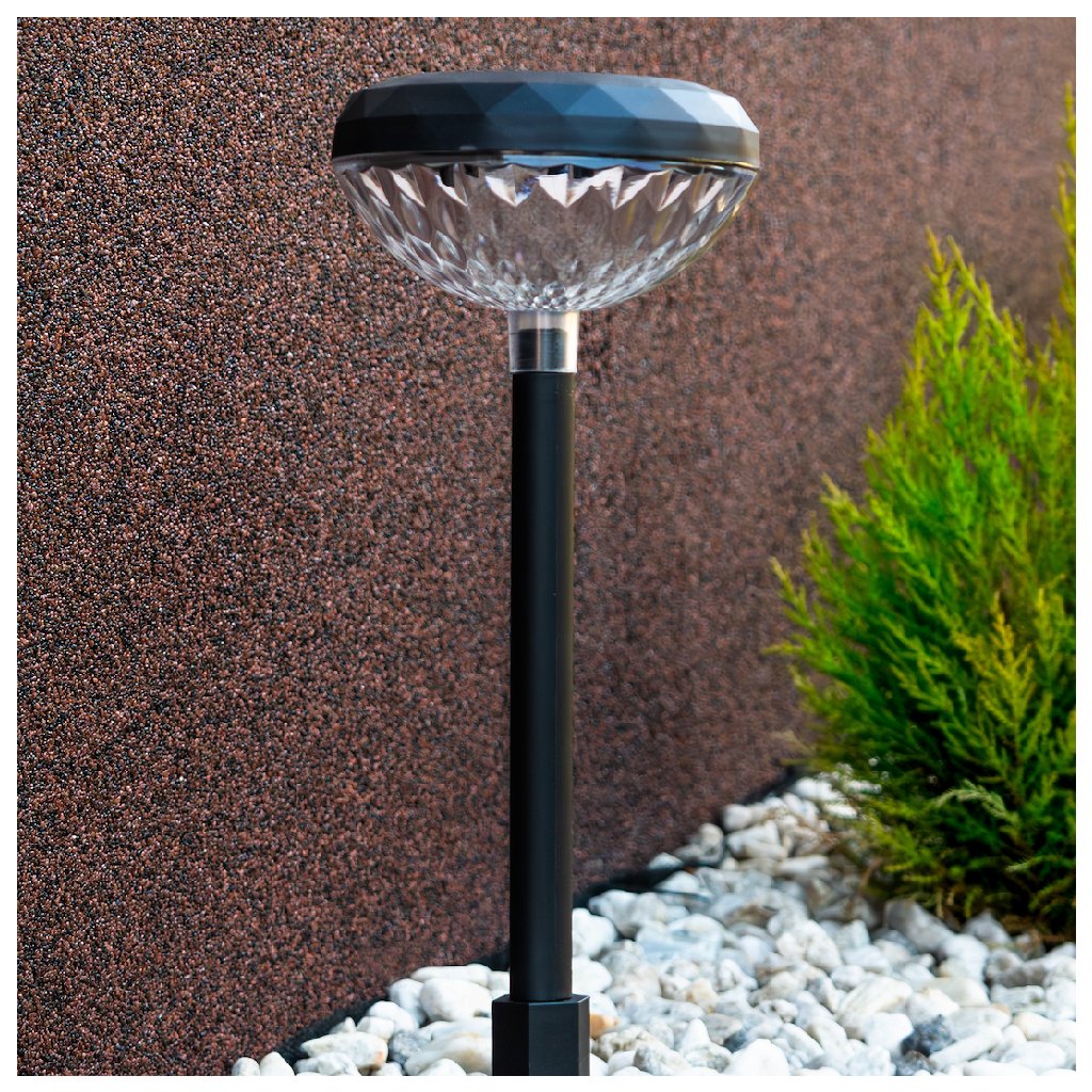 Instalace je jednoduchá a nevyžaduje žádné kabely – stačí jej zapíchnout do země na vybrané místo. Pevná konstrukce z odolného plastu je vhodná pro venkovní použití a zvládá běžné povětrnostní podmínky.