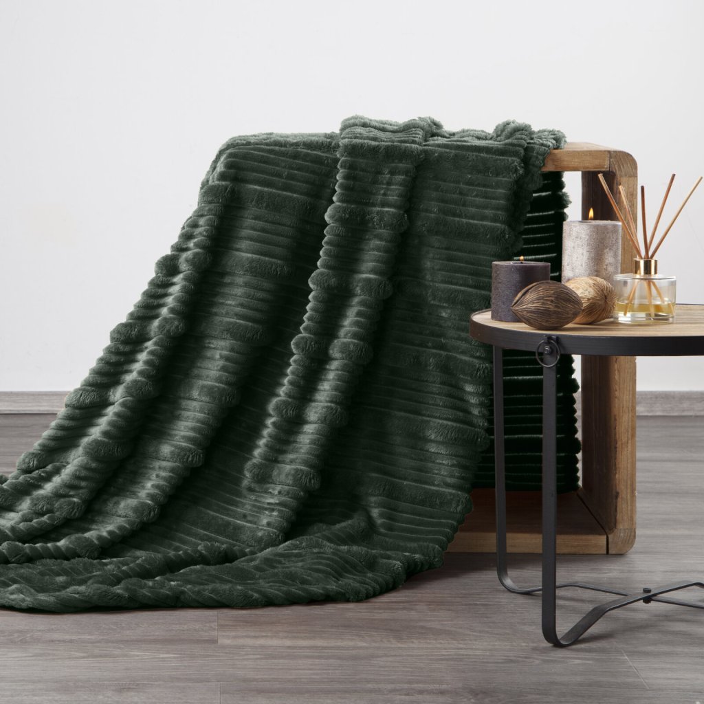 Jemná flanelová deka NINA vás potěší nejen svým mimořádně příjemným materiálem, ale také elegantním 3D efektem, který dodává povrchu originální strukturu. Deka v moderním odstínu se snadno kombinuje s různým vybavením interiéru a díky gramáži látky nabízí optimální hřejivost. Šířka: 150 cm, délka: 200 cm, barva: tmavě zelená, hmotnost: 260 GSM, složení: 100% polyester.Doplňkové parametry