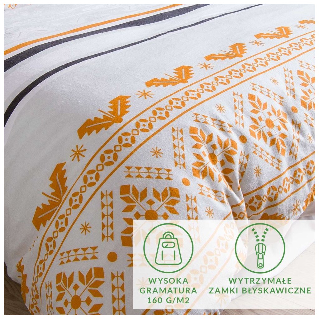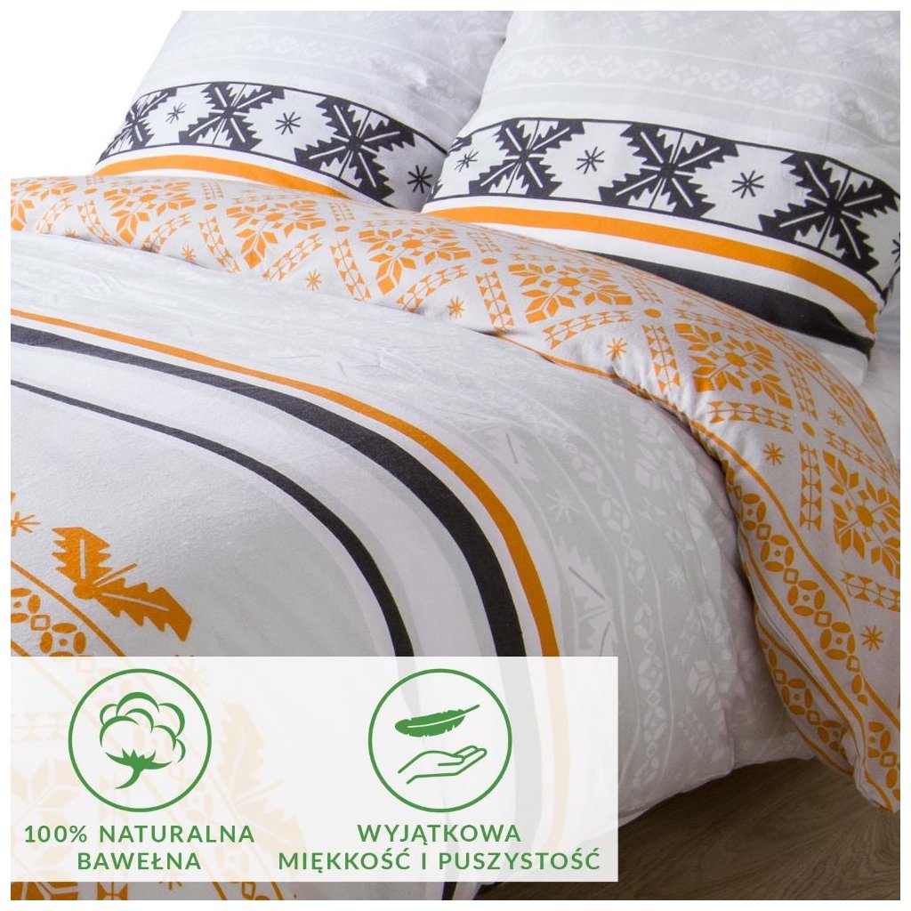 Povlečení z kolekce FLANELOVE je vyrobeno z vysoce kvalitní bavlněné tkaniny - flanelu. Látka má charakteristický fleece, který se získává škrábáním a následným holením jejího povrchu. Díky tomu je husté, měkké a velmi příjemné na dotek. Má dobré tepelně izolační vlastnosti a její další výhodou je odolnost vůči mechanickému poškození. V kombinaci s jedinečným designem a živými barvami zaručuje vysokou kvalitu výrobku. Složení: 100% bavlna. Hmotnost: 160 g/m2. Rozměr sady: povlak na přikrývku 160x200 cm + 2x povlak na polštář 70x80 cm. Zapínání: zip. Barvy na obrázcích se mohou mírně lišit od skutečnosti.Povlečení je vyrobeno ze 100% bavlny.