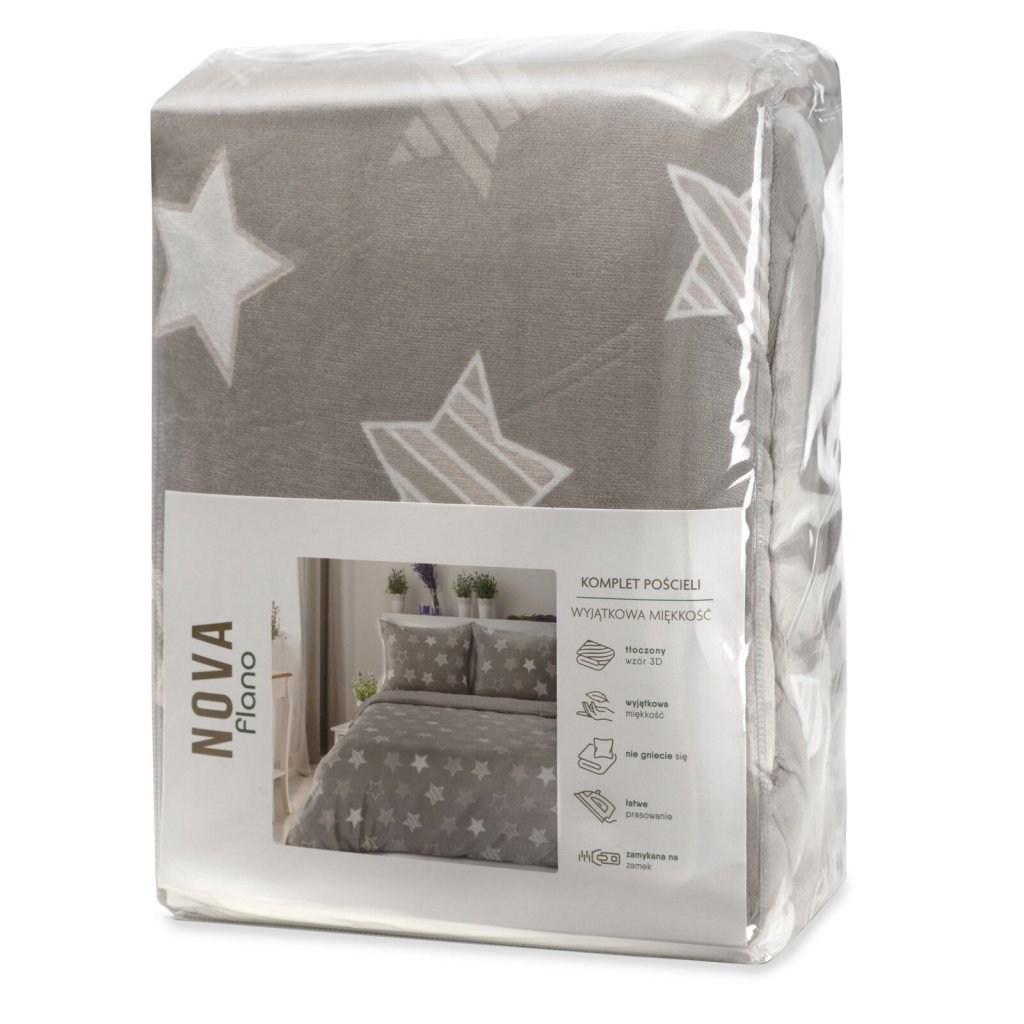 Ložní souprava FLANO poskytuje mimořádnou měkkost a hřejivost, takže je ideální pro chladnější měsíce. Vzor hvězdiček dodává ložní soupravě rafinovaný charakter a přináší jemný dekorativní akcent, který obohacuje vzhled ložnice. Tato tkanina je navíc prodyšná a její výhodou je praktické zapínání na zip. Šířka: 220 cm, délka: 200 cm, povlak na polštář 2 ks 70x80 cm, barva: vícebarevná, gramáž: 210 GSM, složení: 100% polyester.Doplňkové parametry
