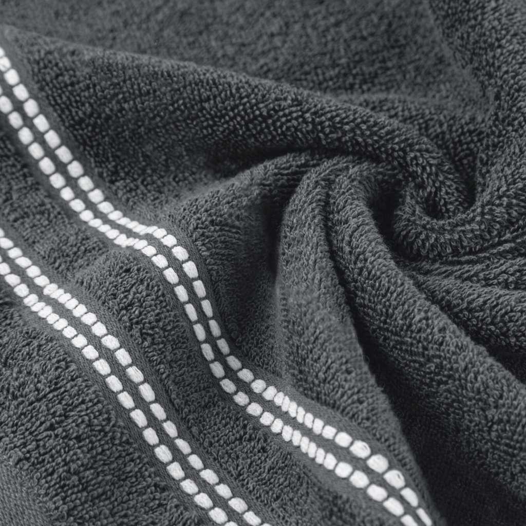 Ručník je vyroben ze savé bavlněné tkaniny s froté vazbou. Minimalistický sametový lem s přídavkem lesklých kovových vláken. Šířka: 30 cm, délka: 50 cm, barva: šedá, gramáž: 500 GSM, složení: 100% bavlna; ozdobná část: 96% bavlna, 4% polyester.Doplňkové parametry