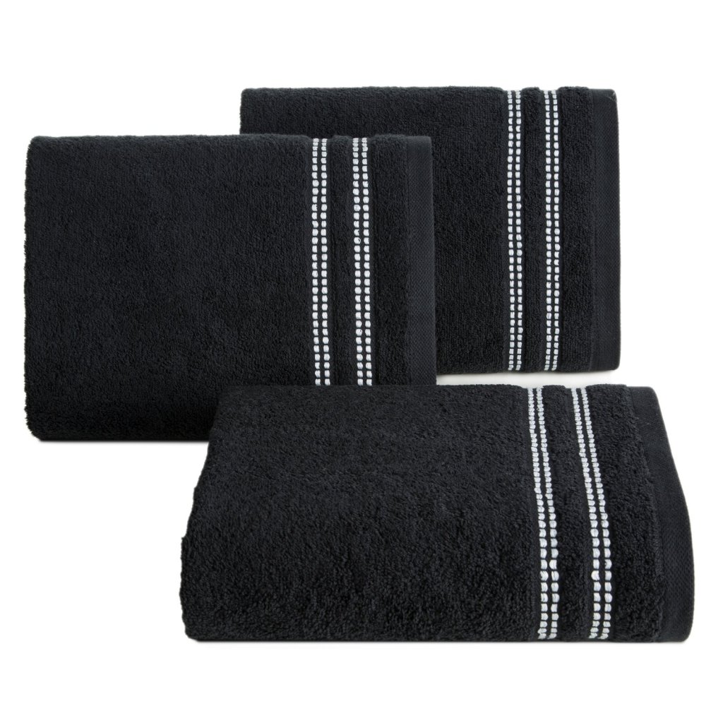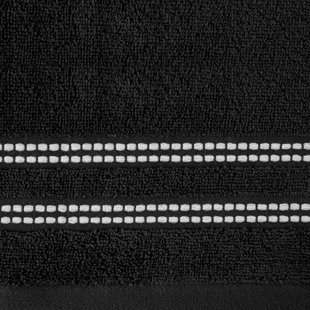 Ručník je vyroben ze savé bavlněné tkaniny s froté vazbou. Minimalistický sametový lem s přídavkem lesklých kovových vláken. Šířka: 70 cm, délka: 140 cm, barva: černá, gramáž: 500 GSM, složení: 100% bavlna; ozdobná část: 96% bavlna, 4% polyester.Doplňkové parametry