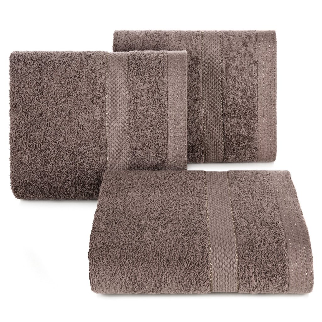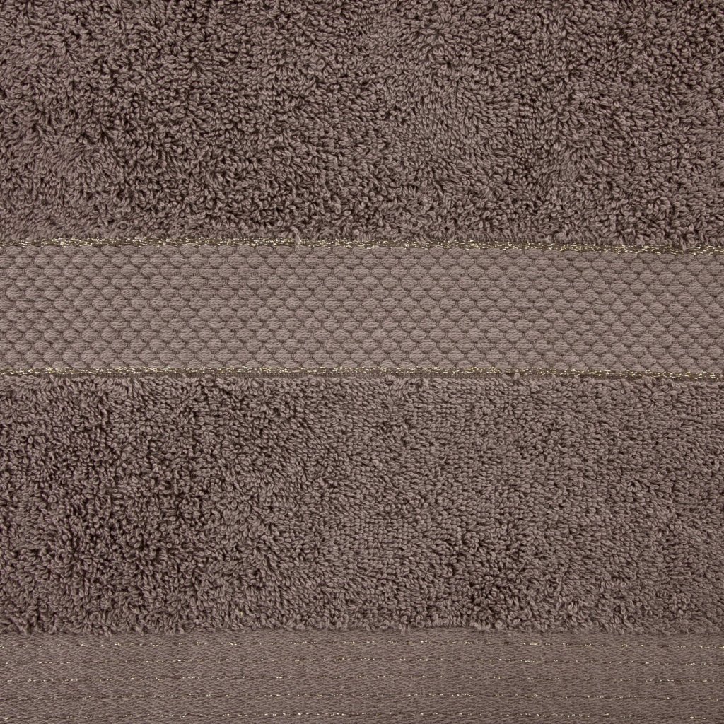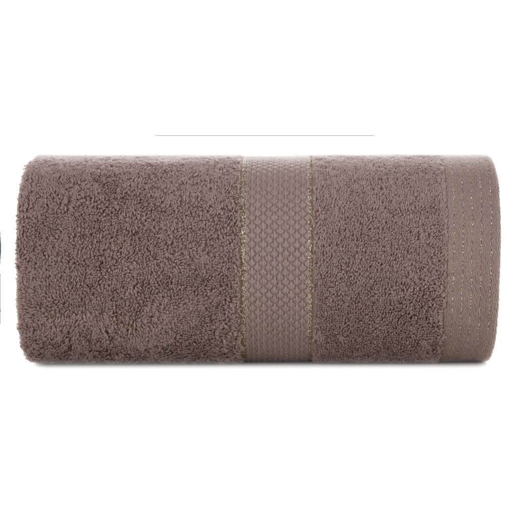 Ručník s froté bavlněnou strukturou klasického charakteru. Šířka: 30 cm, délka: 50 cm, barva: světle hnědá, hmotnost: 500 GSM, složení: 100% bavlna; dekorativní část: 95% bavlna, 5% polyester.Doplňkové parametry