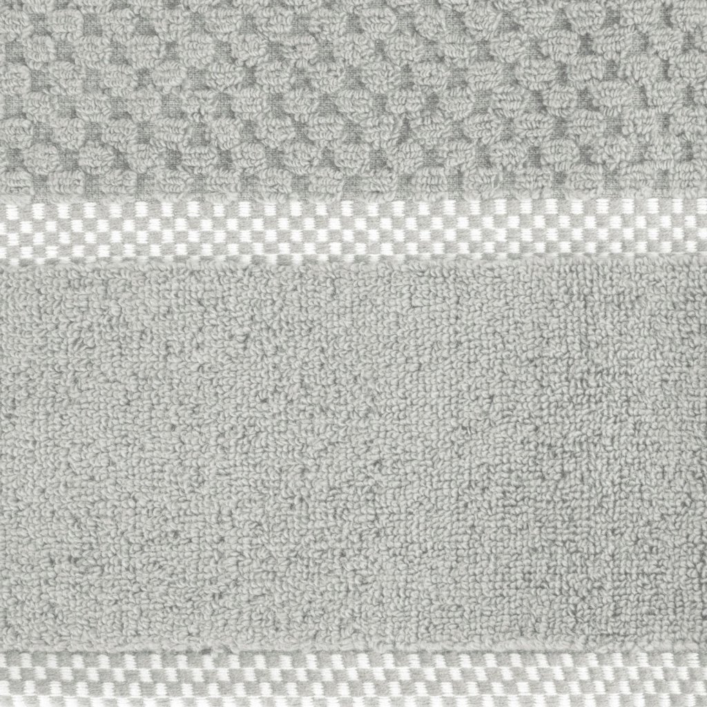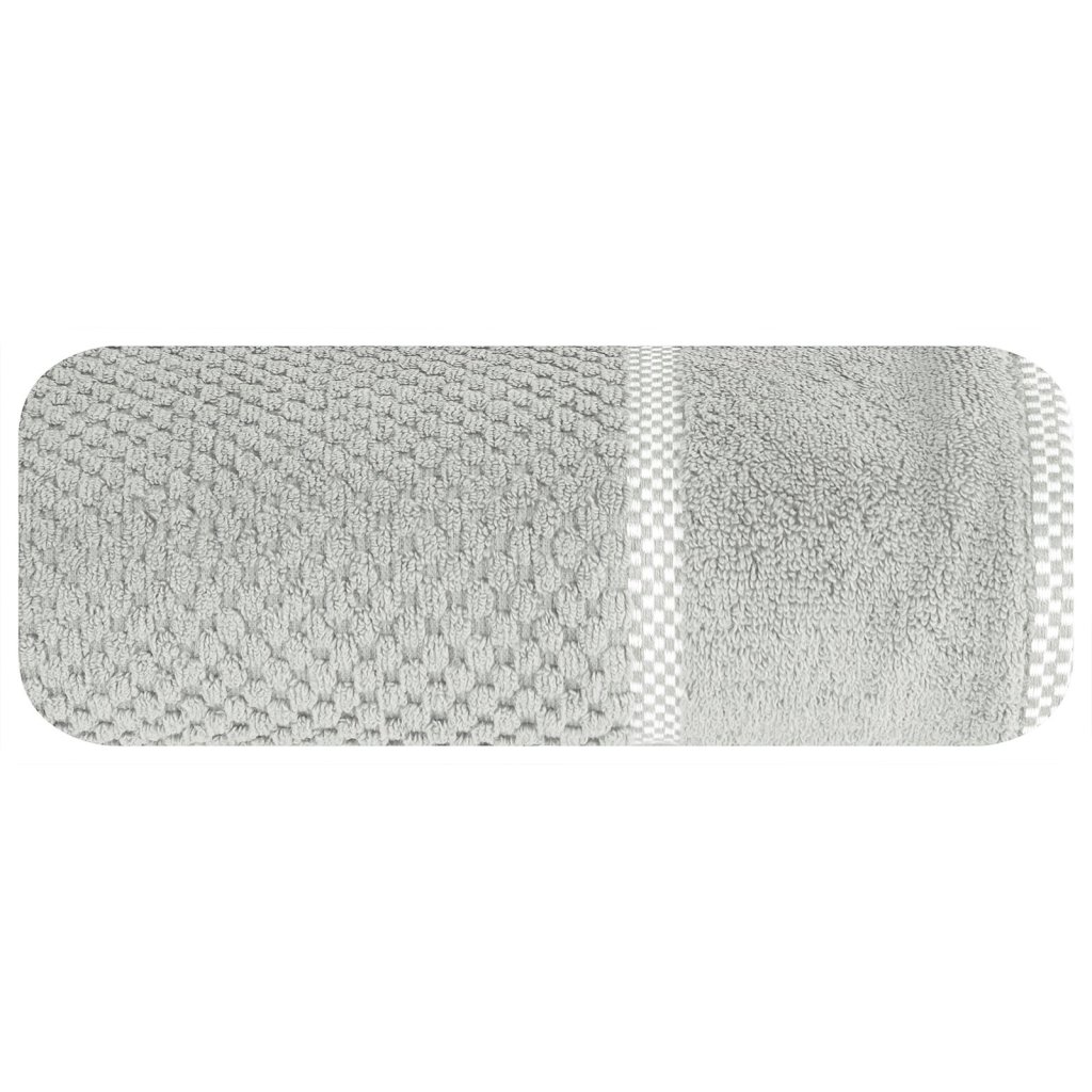 Vysoce savý ručník z měkkého bavlněného froté s jemnou károvanou ražbou a lemováním ve stejném, výraznějším vzoru. Šířka: 50 cm, délka: 90 cm, barva: stříbrná, gramáž: 540 GSM, složení: 100% bavlna.Doplňkové parametry