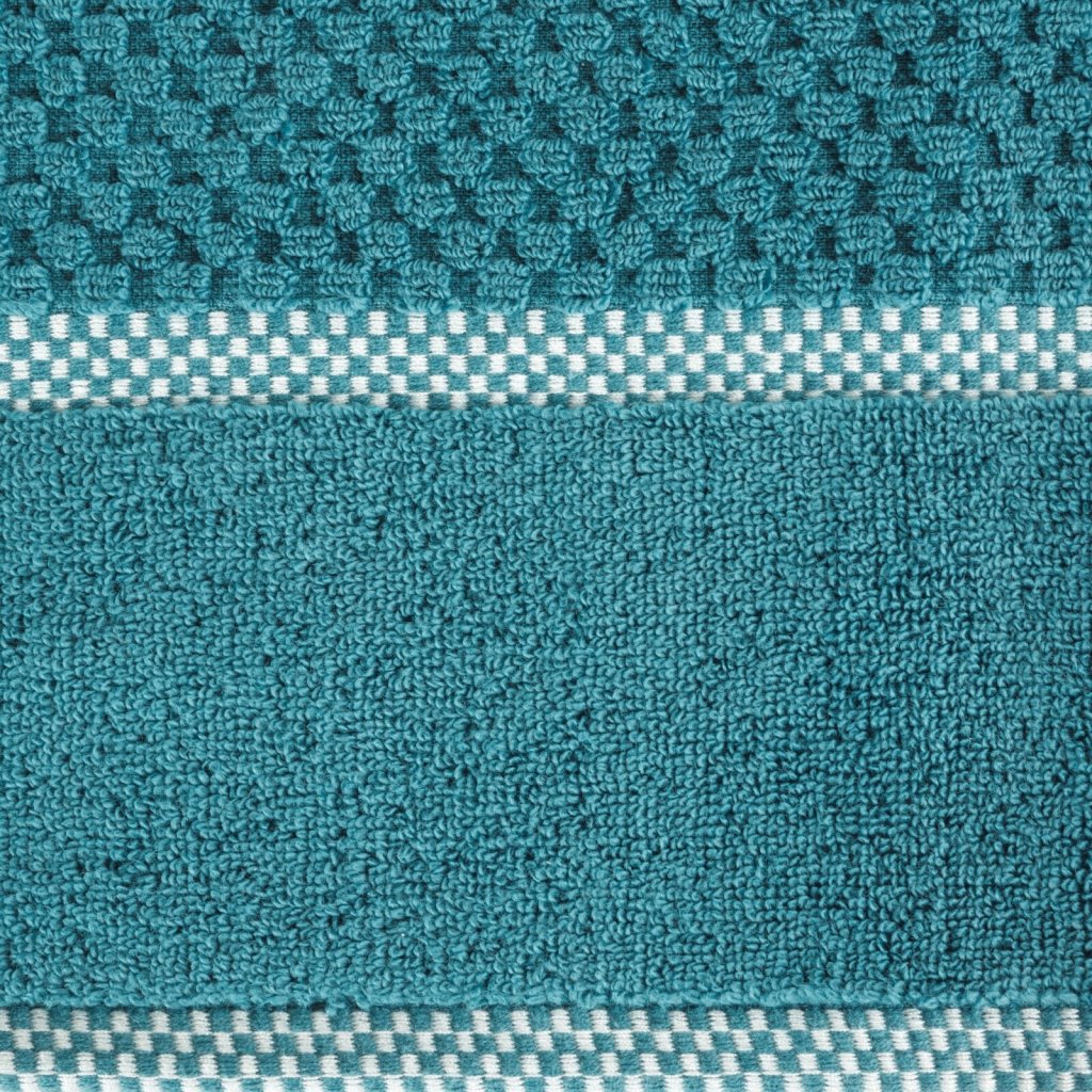 Vysoce savý ručník z měkkého bavlněného froté s jemnou károvanou ražbou a lemováním ve stejném, výraznějším vzoru. Šířka: 70 cm, délka: 140 cm, barva: tmavě tyrkysová, gramáž: 540 GSM, složení: 100% bavlna.Doplňkové parametry