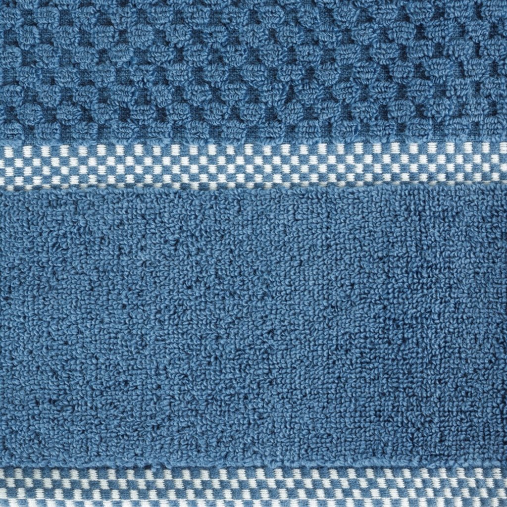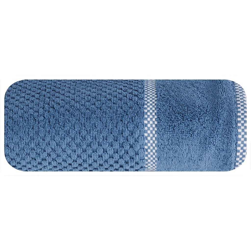 Vysoce savý ručník z měkkého bavlněného froté s jemnou károvanou ražbou a lemováním ve stejném, výraznějším vzoru. Šířka: 70 cm, délka: 140 cm, barva: modrá, gramáž: 540 GSM, složení: 100% bavlna.Doplňkové parametry