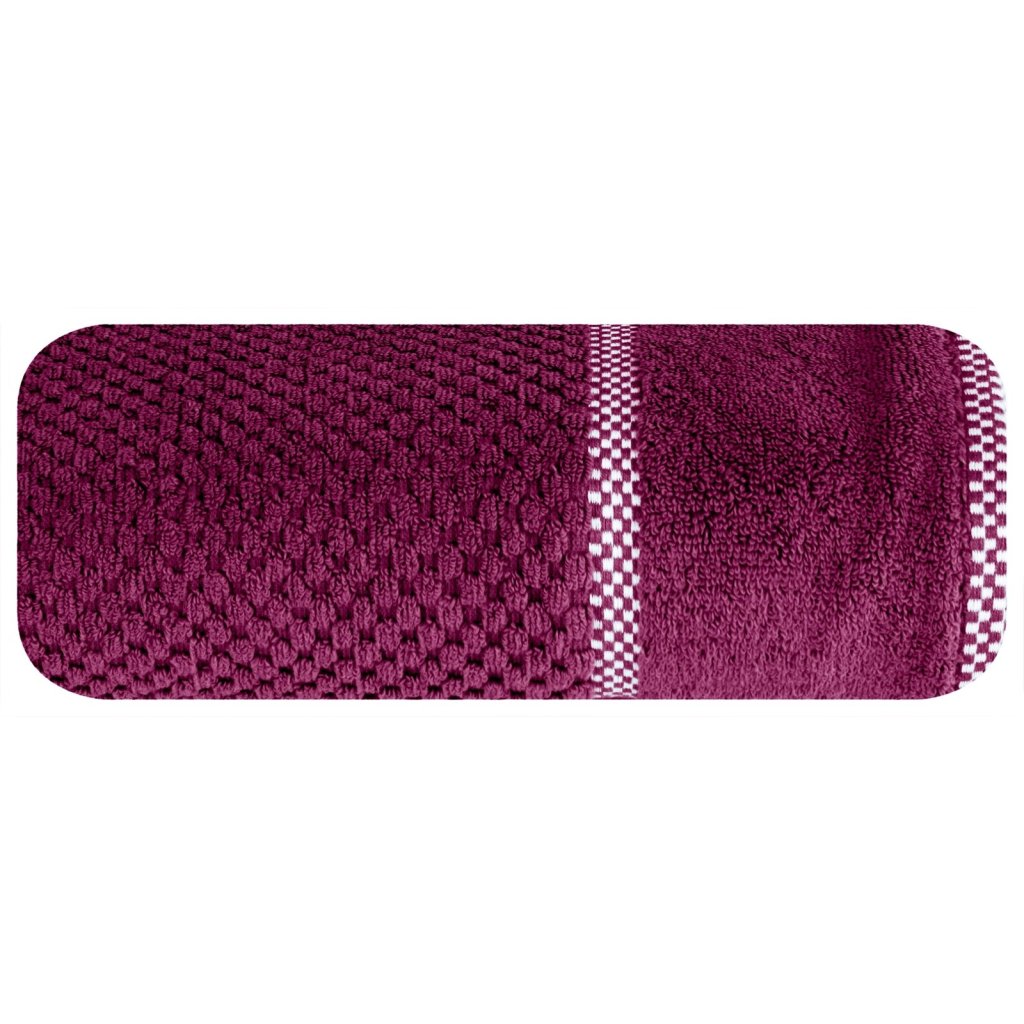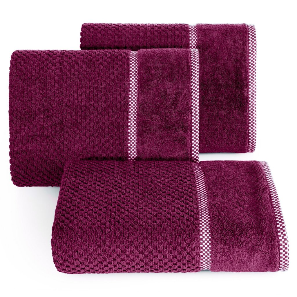 Vysoce savý ručník z měkkého bavlněného froté s jemnou károvanou ražbou a lemováním ve stejném, výraznějším vzoru. Šířka: 50 cm, délka: 90 cm, barva: fialová, gramáž: 540 GSM, složení: 100% bavlna.Doplňkové parametry