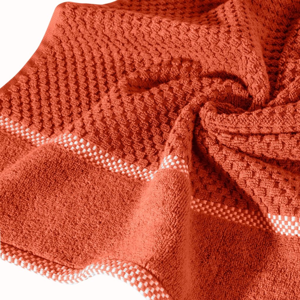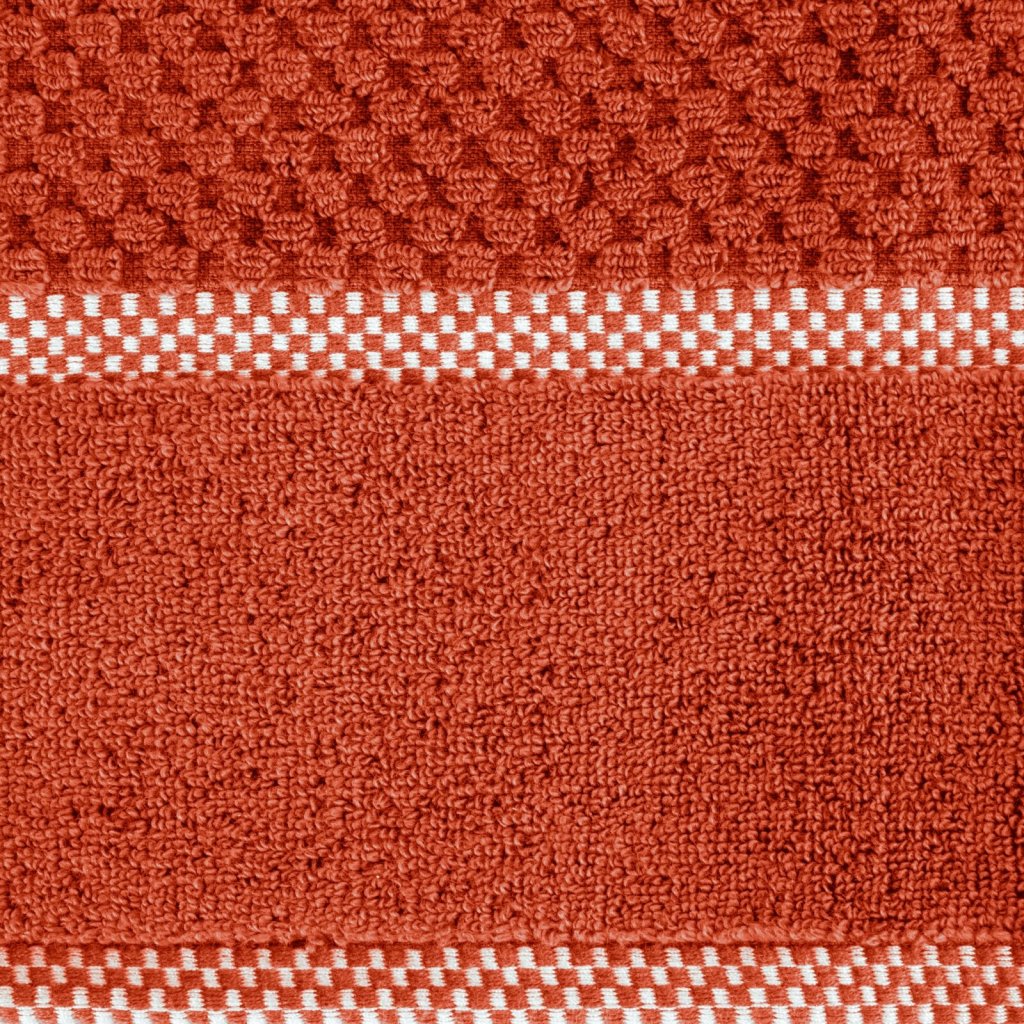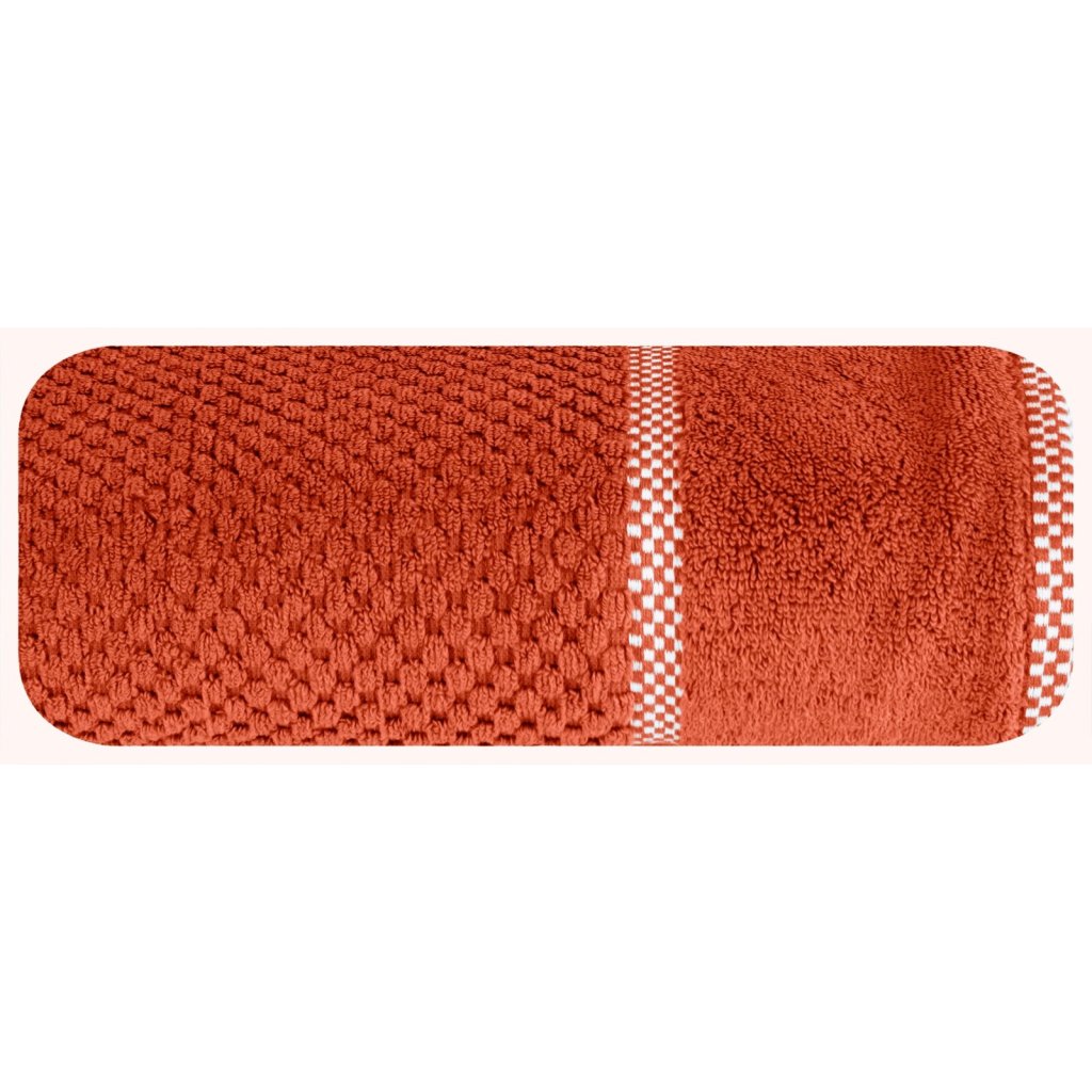 Vysoce savý ručník z měkkého bavlněného froté s jemnou károvanou ražbou a lemováním ve stejném, výraznějším vzoru. šířka 50 cm, délka 90 cm, barva: cihlová, gramáž: 540 GSM, složení: 100% bavlnaDoplňkové parametry