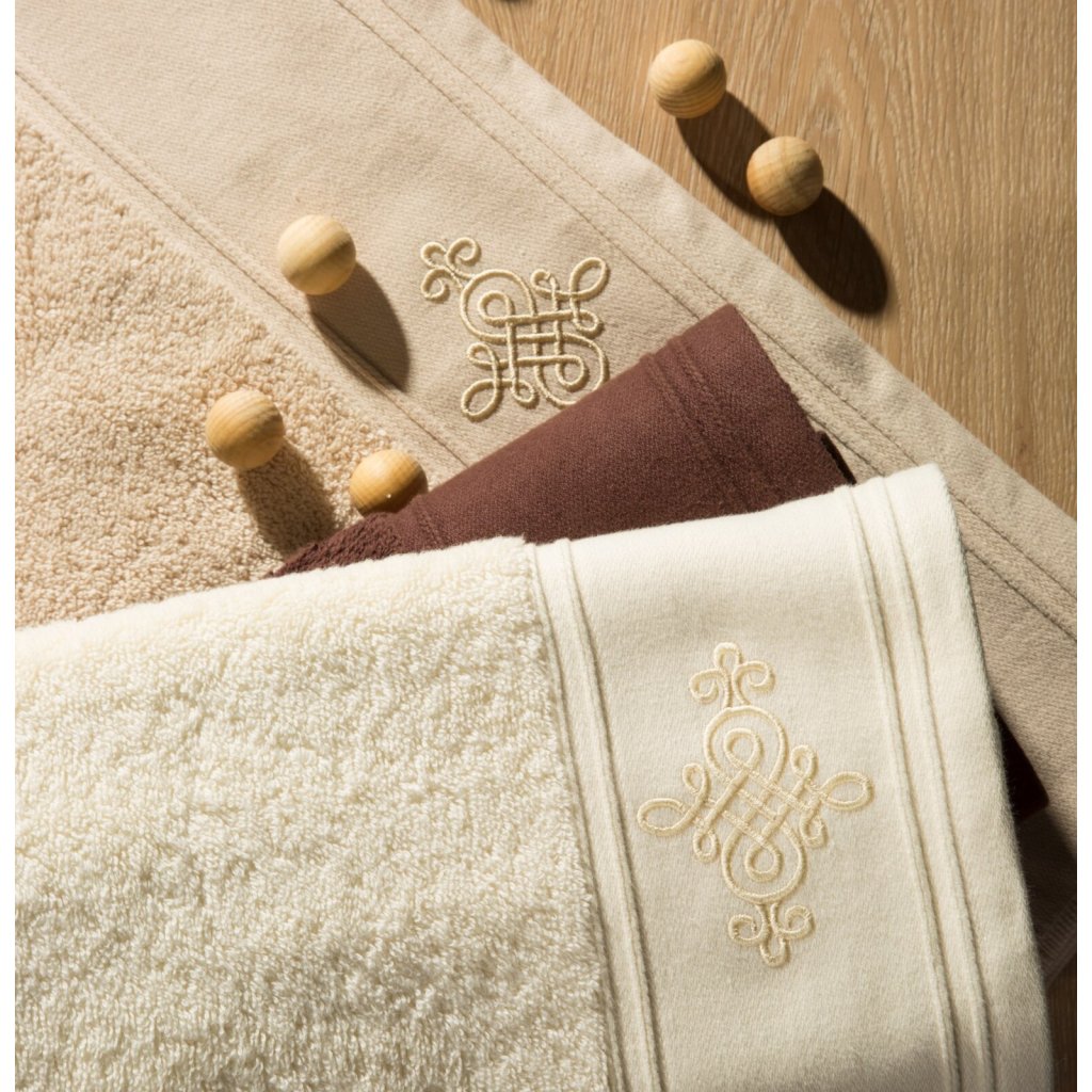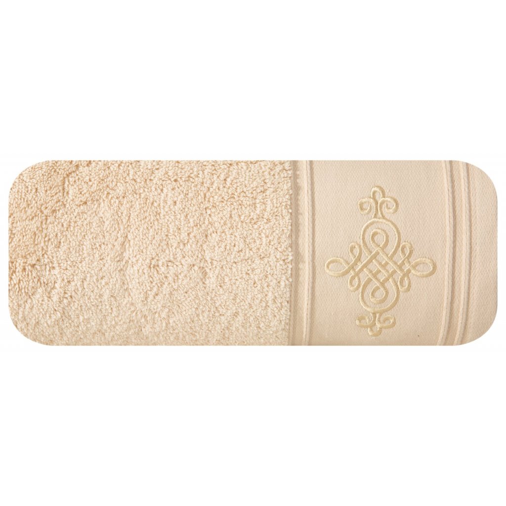 Bavlněný ručník z měkkého a savého froté. Široký okraj zdobí jemný ornament. Šířka: 50 cm, délka: 90 cm, barva: béžová, gramáž: 600 GSM, složení: 100% bavlna.Doplňkové parametry