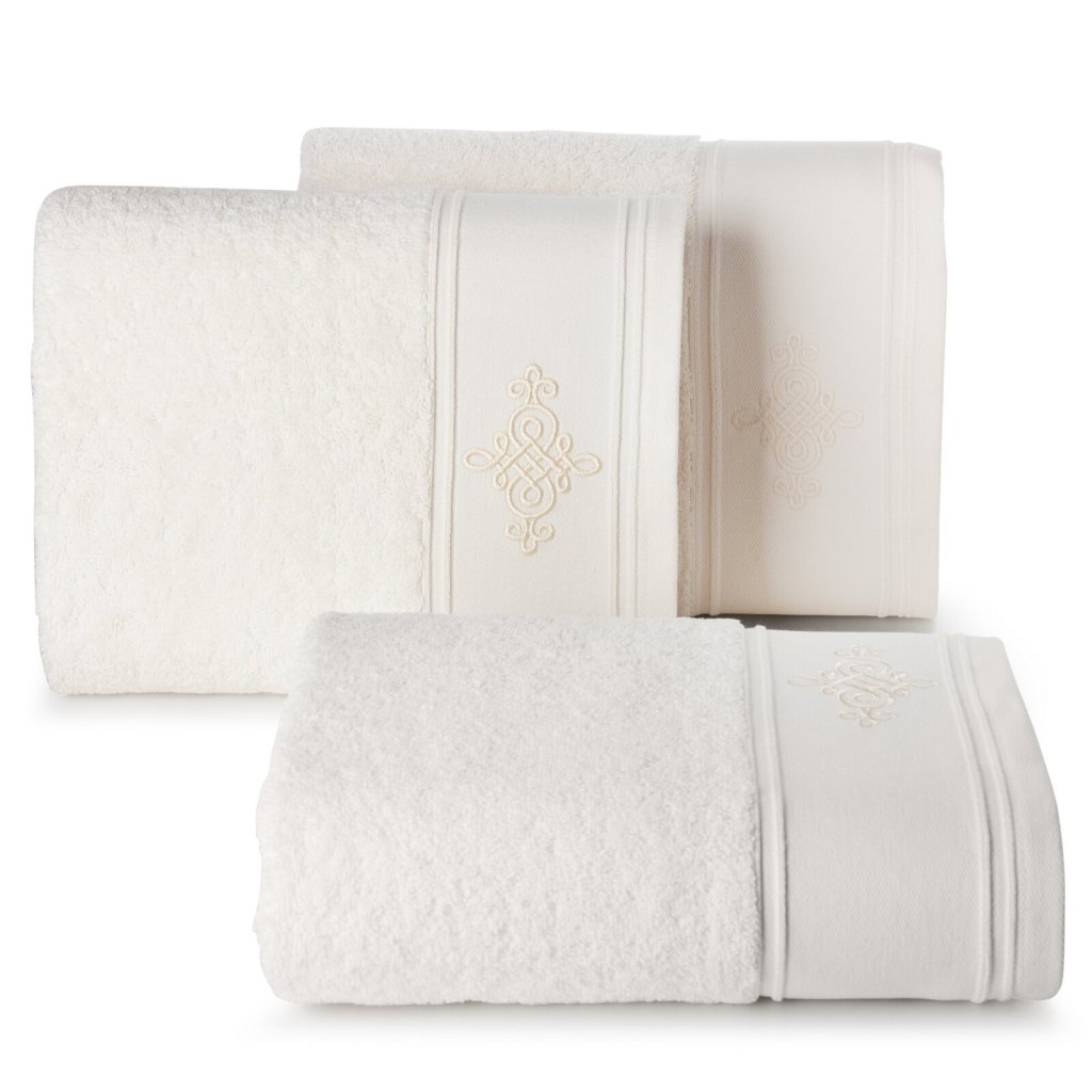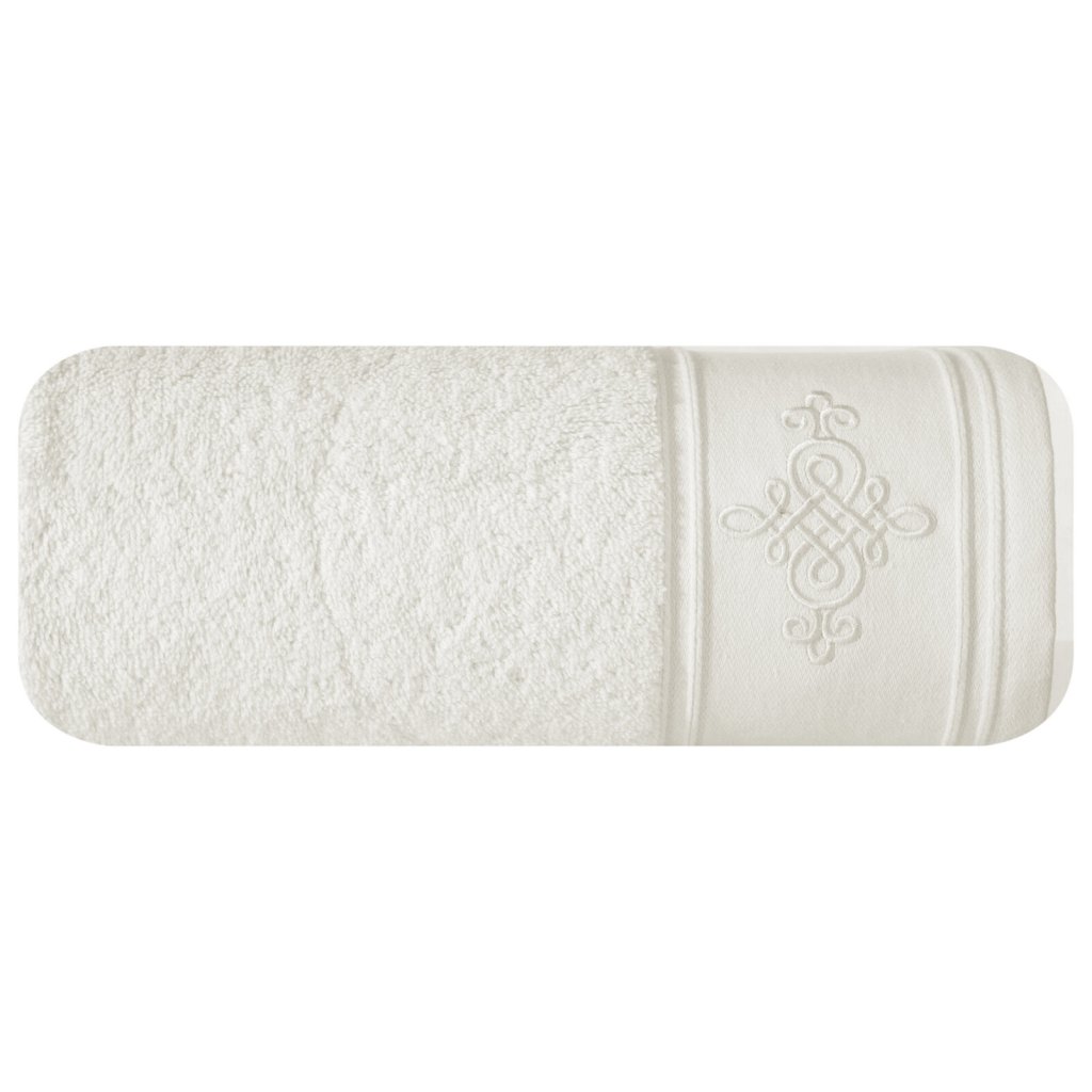 Bavlněný ručník z měkkého a savého froté. Široký okraj zdobí jemný ornament. Šířka: 70 cm, délka: 140 cm, barva: krémová, gramáž: 600 GSM, složení: 100% bavlna.Doplňkové parametry