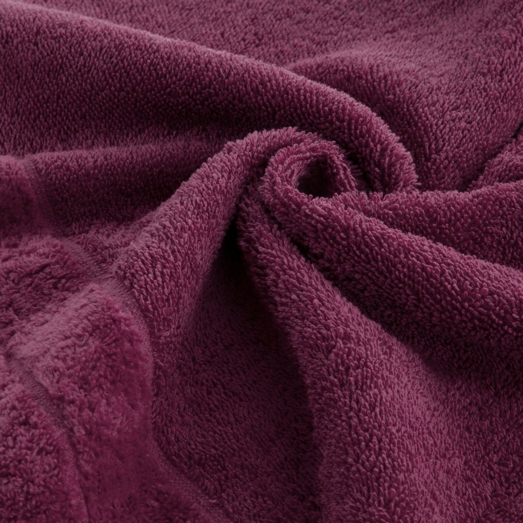 Elegantní ručník z měkkého a vysoce savého froté. Okraje jsou zdobené jemným sametovým lemem. Šířka: 70 cm, délka: 140 cm, barva: amarant, gramáž: 500 GSM, složení: 100 % bavlna.Doplňkové parametry