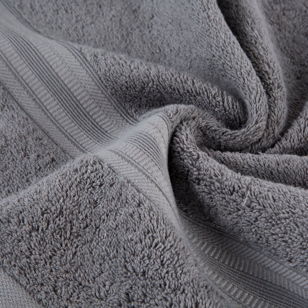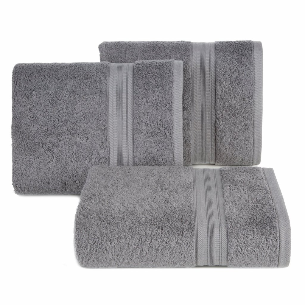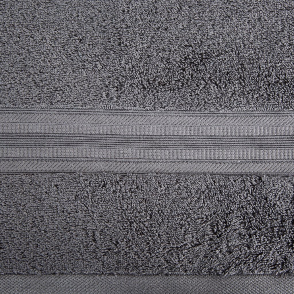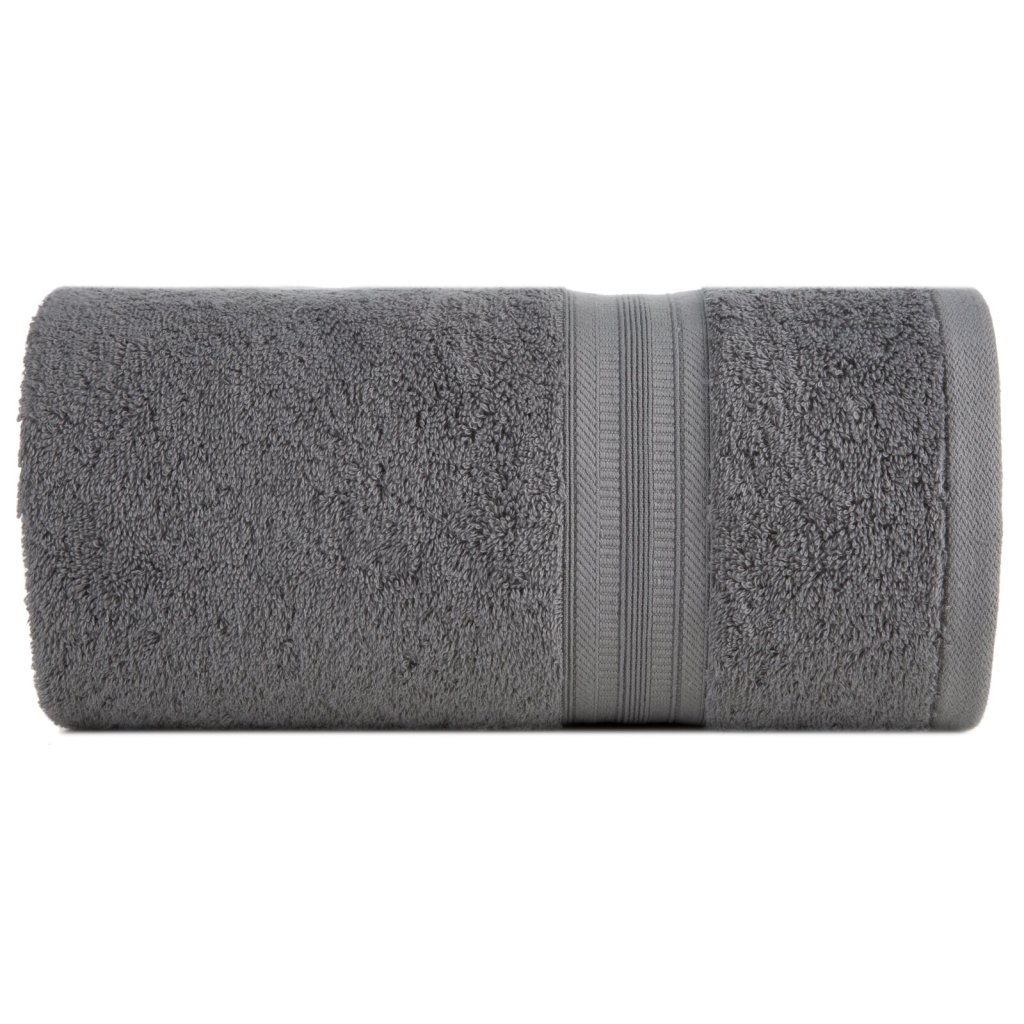 Ručník z měkké a savé bavlněné tkaniny s froté vazbou, zdobený barevným lemem ve stylu bastingu. Šířka: 30 cm, délka: 50 cm, barva: tmavě šedá, hmotnost: 550 GSM, složení: 100% bavlna.Doplňkové parametry