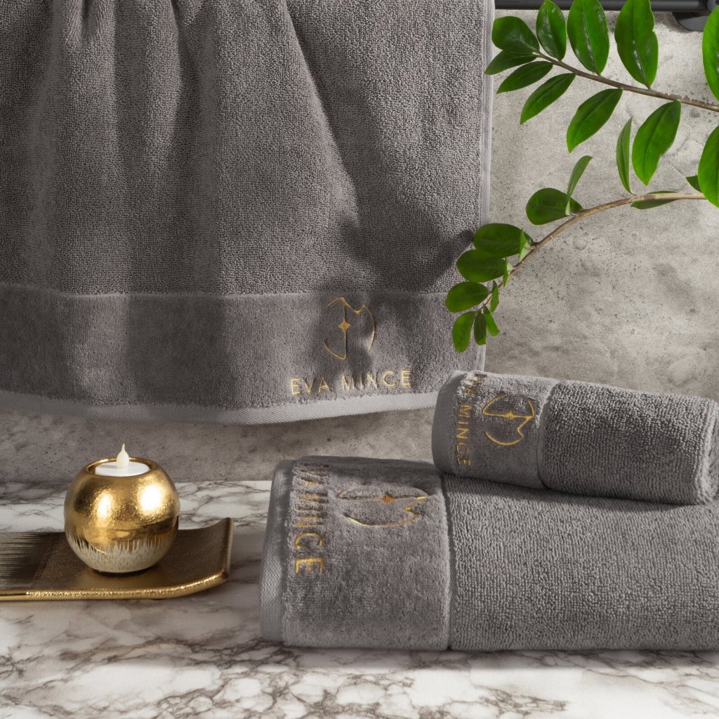 Barevně sladěné ručníky se sametovým okrajem a vyšitým logem Eva Minge podtrhnou jedinečný styl vaší koupelny. Mimořádně měkká a nadýchaná froté bavlna s vysokou gramáží zajišťuje šetrné osušení těla po koupeli. Sada tří ručníků z kolekce EVA MINGE, zabalená v elegantní kartonové krabici, je ideálním nápadem na originální a praktický dárek. Darujte jedinečný dárek - vyberte si ručníky nejvyšší kvality z přírodní a k pokožce šetrné froté bavlny. 3 kusy ručníků o rozměrech: 70x140 cm - 1 kus, 50x90 cm - 1 kus, 30x50 cm - 1 kus, barva: šedá, gramáž: 550 GSM, složení: 100% bavlna.Doplňkové parametry