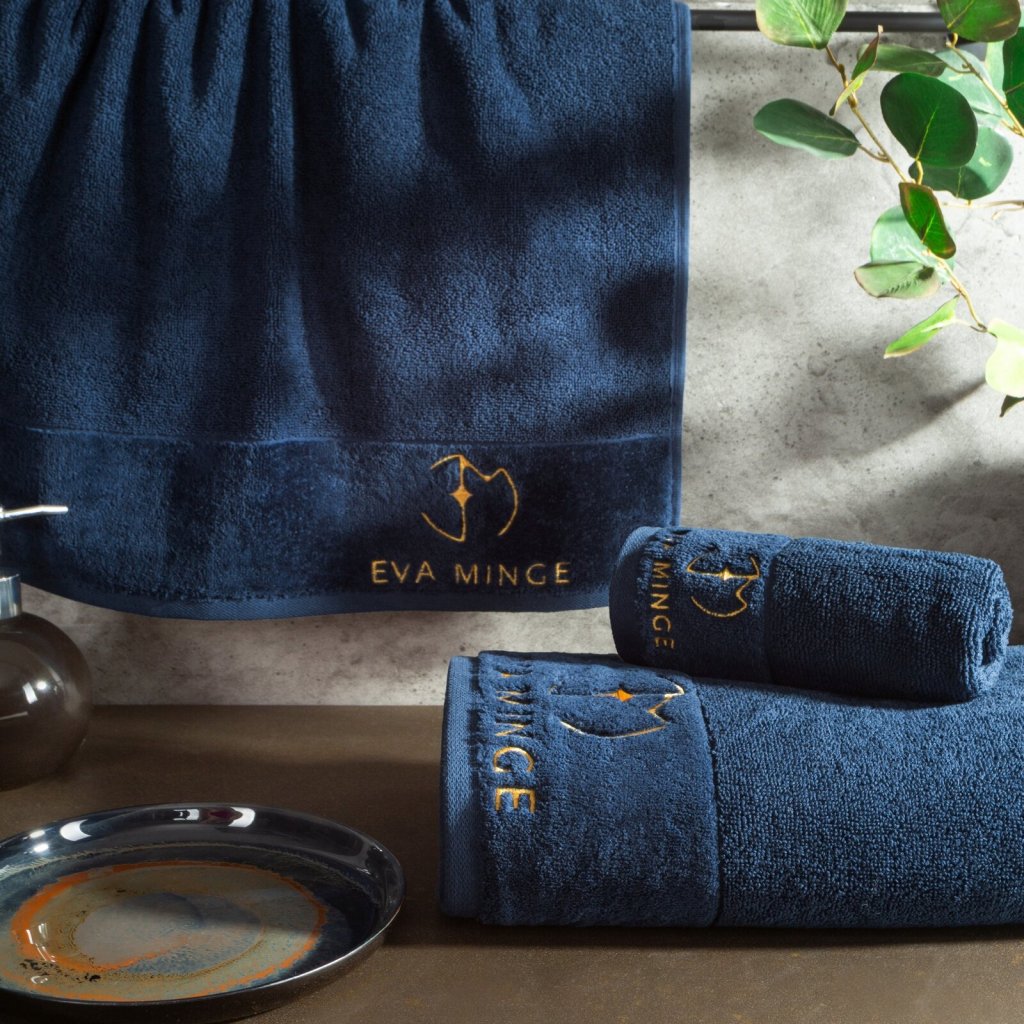 Barevně sladěné ručníky se sametovým okrajem a vyšitým logem Eva Minge podtrhnou jedinečný styl vaší koupelny. Mimořádně měkká a nadýchaná froté bavlna s vysokou gramáží zajišťuje šetrné osušení těla po koupeli. Sada tří ručníků z kolekce EVA MINGE, zabalená v elegantní kartonové krabici, je ideálním nápadem na originální a praktický dárek. Darujte jedinečný dárek - vyberte si ručníky nejvyšší kvality z přírodní a k pokožce šetrné froté bavlny. 3 kusy ručníků o rozměrech: 70x140 cm - 1 kus, 50x90 cm - 1 kus, 30x50 cm - 1 kus, barva: tmavě modrá, hmotnost: 550 GSM, složení: 100% bavlna.Doplňkové parametry