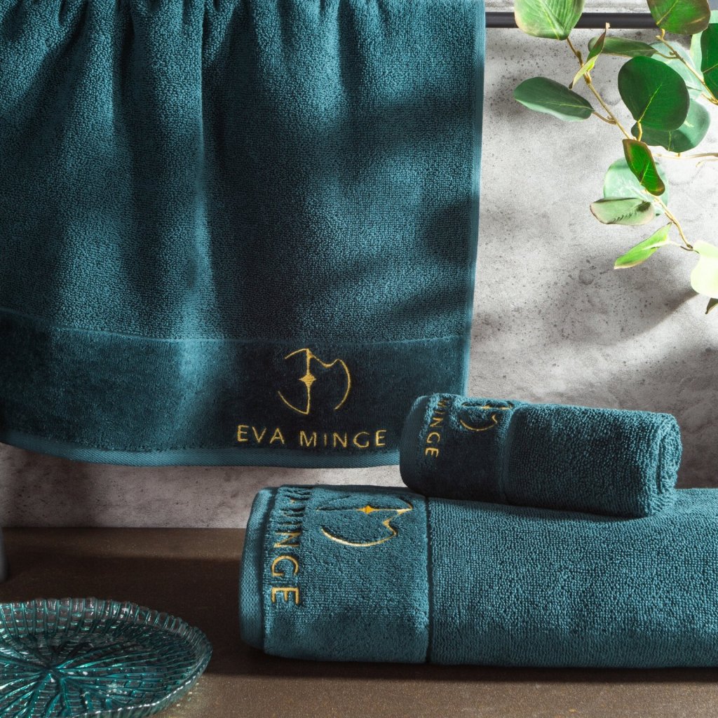Barevně sladěné ručníky se sametovým okrajem a vyšitým logem Eva Minge podtrhnou jedinečný styl vaší koupelny. Mimořádně měkká a nadýchaná froté bavlna s vysokou gramáží zajišťuje šetrné osušení těla po koupeli. Sada tří ručníků z kolekce EVA MINGE, zabalená v elegantní kartonové krabici, je ideálním nápadem na originální a praktický dárek. Darujte jedinečný dárek - vyberte si ručníky nejvyšší kvality z přírodní a k pokožce šetrné froté bavlny. 3 kusy ručníků o rozměrech: 70x140 cm - 1 kus, 50x90 cm - 1 kus, 30x50 cm - 1 kus, barva: tmavě zelená, hmotnost: 550 GSM, složení: 100% bavlna.Doplňkové parametry