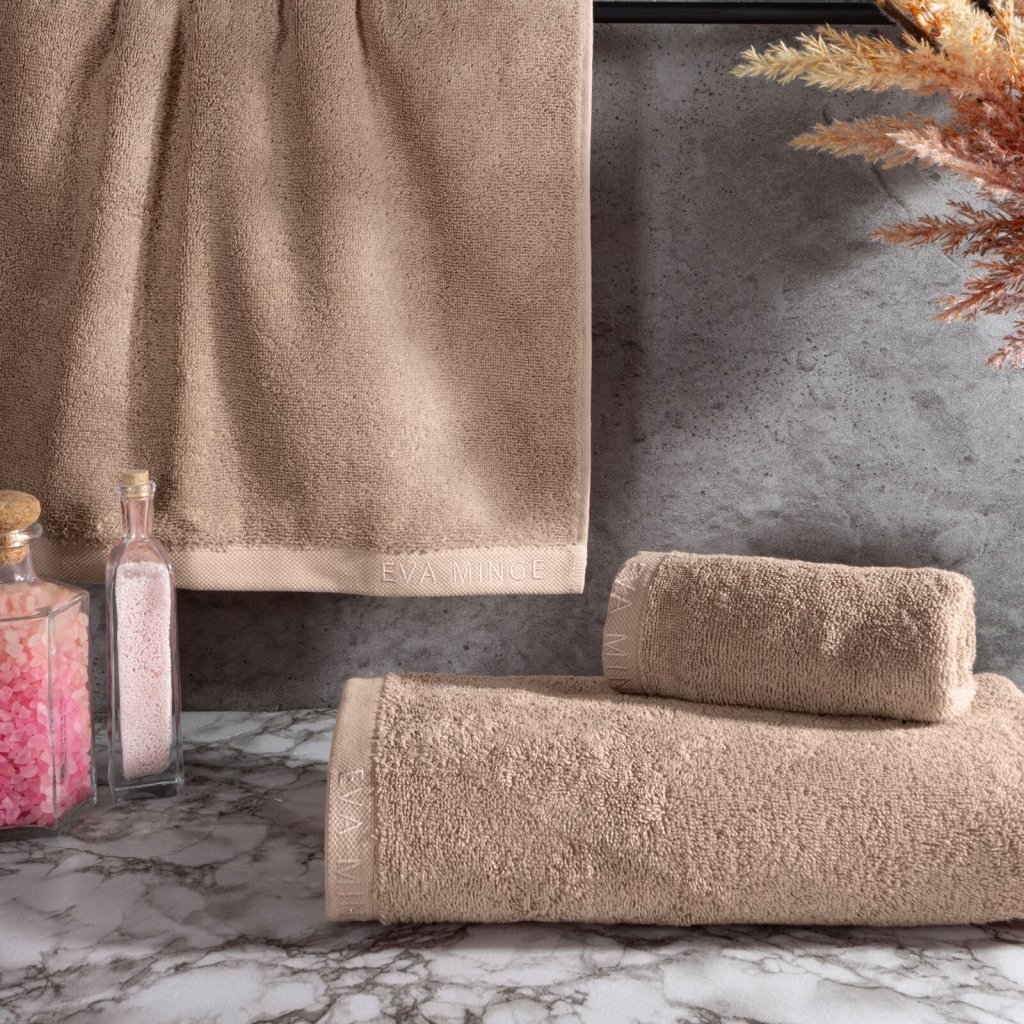 Nejkvalitnější látky, jedinečné a výrazné vzory a módní barvy v souladu s nejnovějšími světovými trendy jsou charakteristickými znaky nejnovější kolekce podepsané Evou Minge. Barevně sladěné ručníky s úzkým vyšívaným okrajem s logem Eva Minge podtrhnou jedinečný styl koupelny. Mimořádně měkká a nadýchaná froté bavlna s vysokou gramáží zajišťuje šetrné sušení. Sada tří ručníků z kolekce EVA MINGE zabalená v elegantní kartonové krabici je ideálním nápadem na originální a praktický dárek. Sada 3 ks ručníků o rozměrech: 70x140 cm - 1 ks, 50x90 cm - 1 ks, 30x50 cm - 1 ks, barva: pudrová, gramáž: 550 GSM, složení: 100% bavlna.Doplňkové parametry