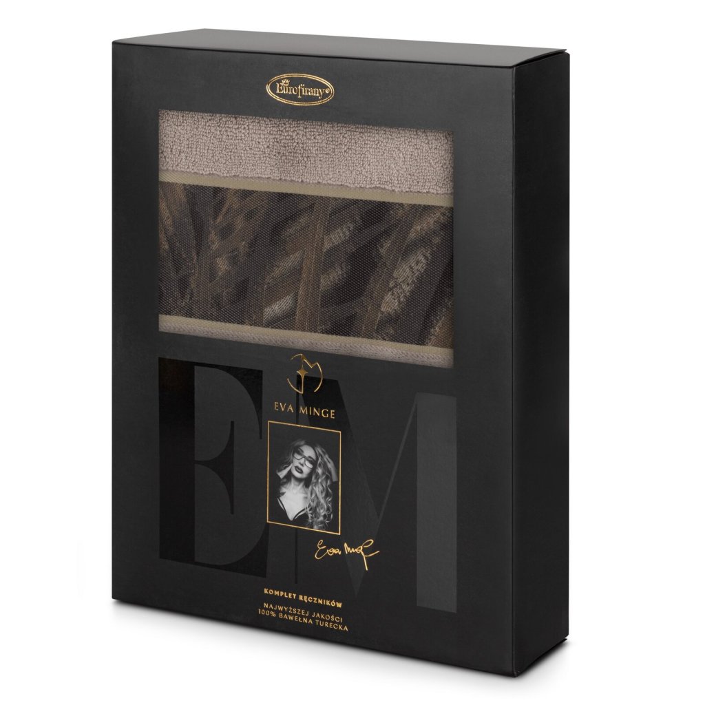 Nejkvalitnější látky, jedinečné a výrazné vzory a módní barvy v souladu s nejnovějšími světovými trendy jsou charakteristickými znaky nejnovější kolekce podepsané Evou Minge. Barevně sladěné ručníky s designovým lemem podtrhnou jedinečný styl vaší koupelny. Mimořádně měkká a nadýchaná froté bavlna s vysokou gramáží zajišťuje šetrné sušení. Sada tří ručníků z kolekce EVA MINGE zabalená v elegantní kartonové krabici je ideálním nápadem na originální a praktický dárek. 3 ks ručníků o rozměrech: 70x140 cm - 1 ks, 50x90 cm - 1 ks, 30x50 cm - 1 ks, barva: béžová, gramáž: 500 GSM, složení: 100% bavlna; ozdobný lem: 100% polyester.Doplňkové parametry