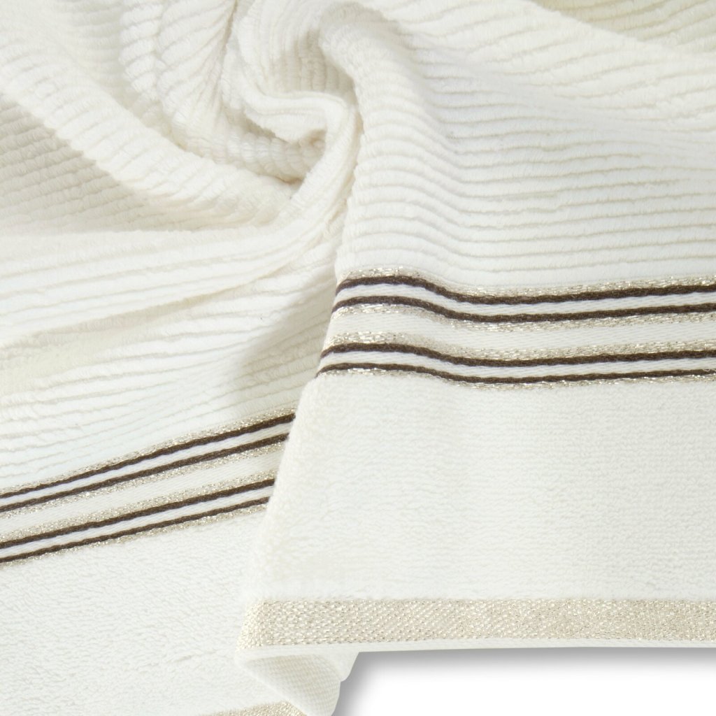 Velmi nadýchaný a extrémně savý froté ručník s jemnou žebrovanou strukturou. Šířka: 70 cm, délka: 140 cm, barva: krémová, hmotnost: 530 GSM, složení: 100% bavlna.Doplňkové parametry