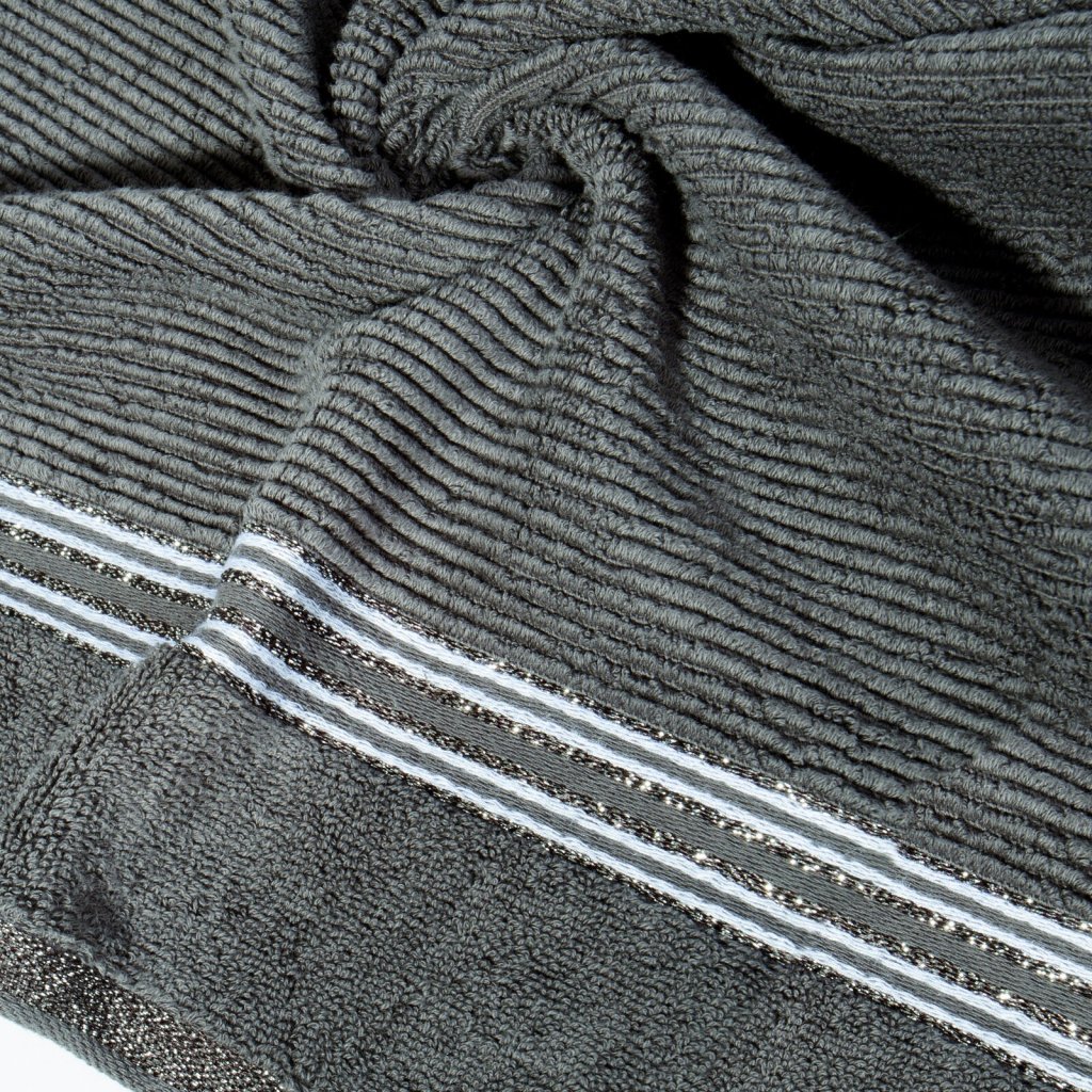 Velmi nadýchaný a extrémně savý froté ručník s jemnou žebrovanou strukturou. Šířka: 50 cm, délka: 90 cm, barva: šedá, hmotnost: 530 GSM, složení: 100% bavlna.Doplňkové parametry