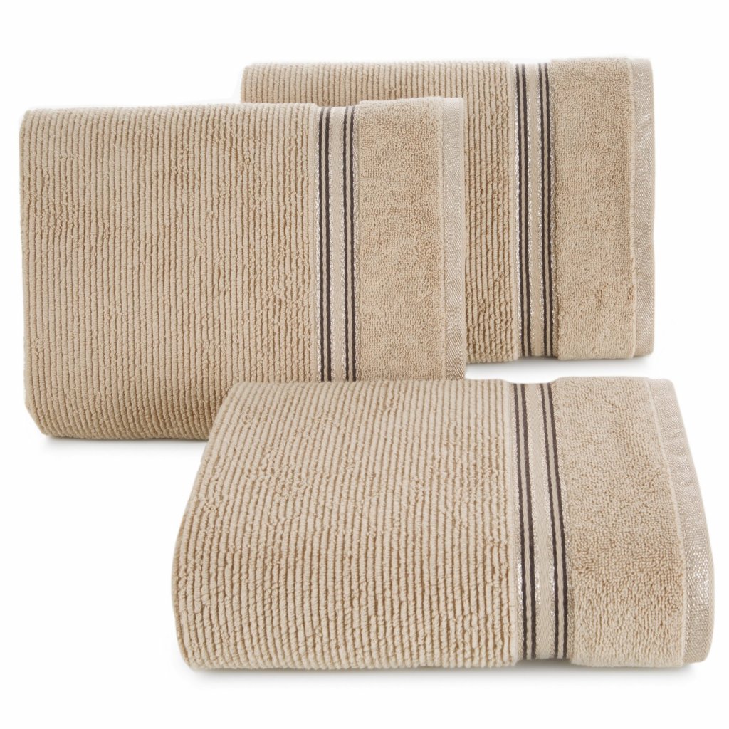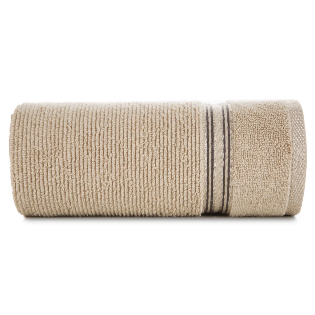 Velmi nadýchaný a extrémně savý froté ručník s jemnou žebrovanou strukturou. Šířka: 50 cm, délka: 90 cm, barva: béžová, hmotnost: 530 GSM, složení: 100% bavlna.Doplňkové parametry