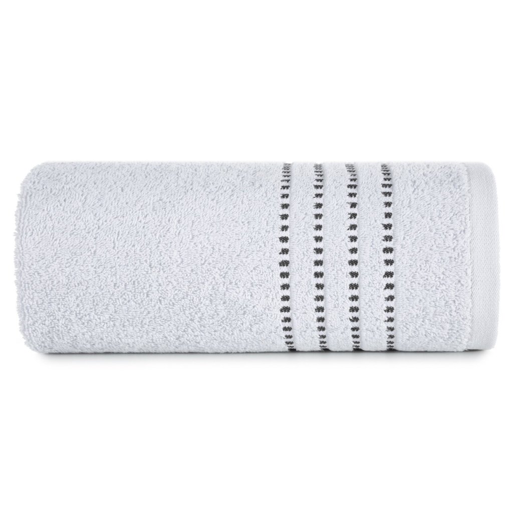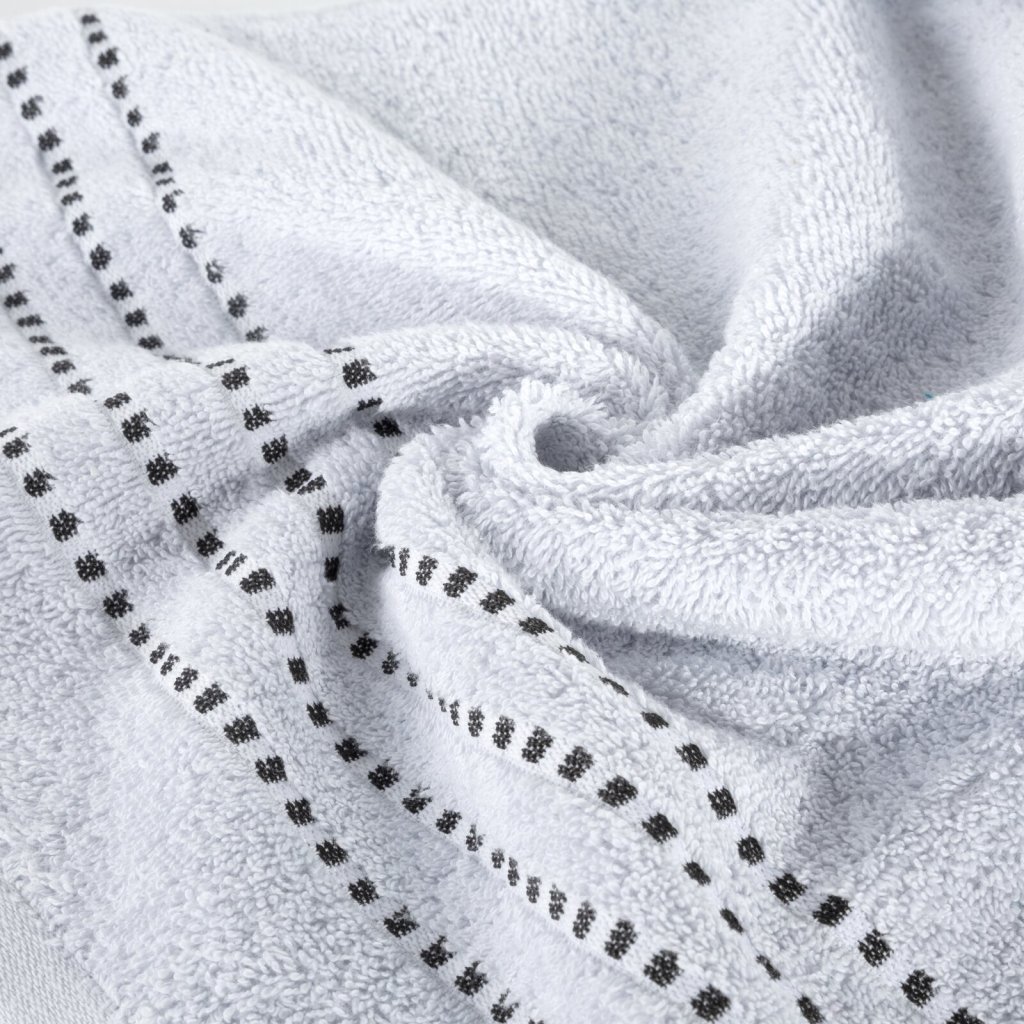 Ručník je vyroben ze savého bavlněného froté. Minimalistický velur je olemován lesklou nití. Šířka 30 cm, délka 50 cm, barva: stříbrná, gramáž: 500 GSM, složení: 100% bavlna.Doplňkové parametry