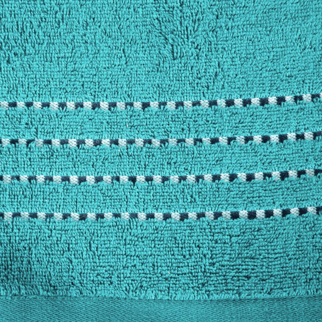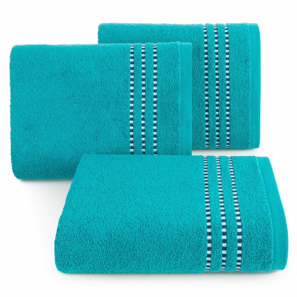 Ručník je vyroben ze savého bavlněného froté. Minimalistický velur je lemován lesklou nití. Šířka: 30 cm, délka: 50 cm, barva: světle tyrkysová, hmotnost: 500 GSM, složení: 100% bavlna.Doplňkové parametry