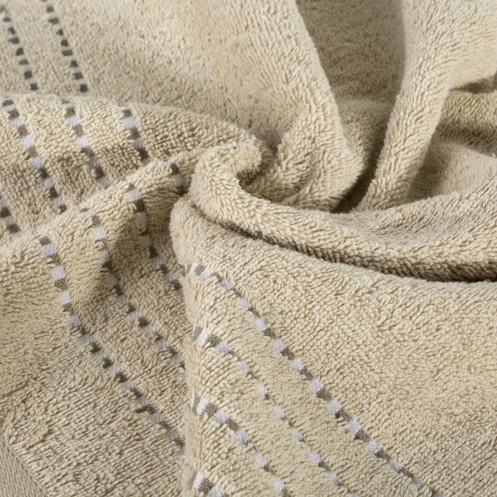 Ručník ze savého bavlněného froté. Minimalistický velur je olemován lesklou nití. Šířka: 50 cm, délka: 90 cm, barva: béžová, gramáž: 500 GSM, složení: 100% bavlna.Doplňkové parametry