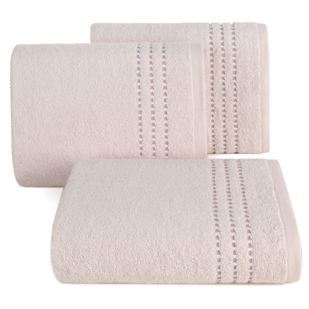 Klasický ručník ze savého bavlněného froté. Minimalistický velurový lem s lesklou kovovou nití, šířka: 30 cm, délka: 50 cm, barva: světle růžová, gramáž: 500 GSM, složení: 100% bavlna.Doplňkové parametry