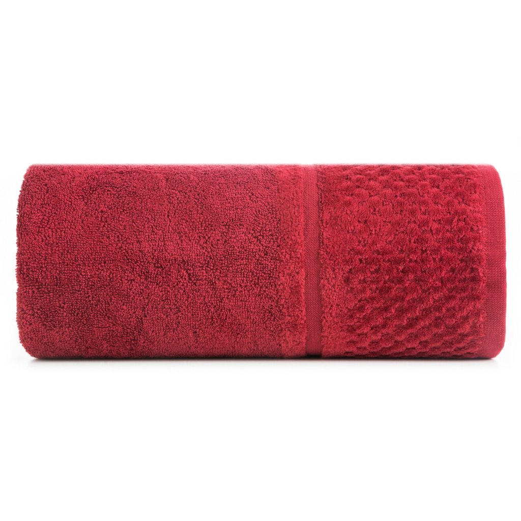 Ručník ze 100% savého bavlněného froté. Minimalistický velur je olemován lesklou nití. Šířka: 30 cm, délka: 50 cm, barva: červená, gramáž: 550 GSM, složení: 100% bavlna.Doplňkové parametry