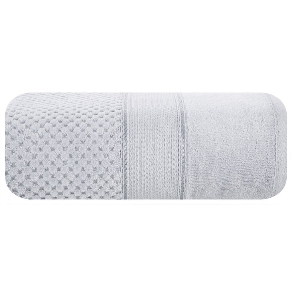 Ručník s rovným okrajem a froté se strukturou, šířka: 90 cm, délka: 150 cm, barva: stříbrná, složení: 100% bavlna; ozdobná část: 99% bavlna, 1% viskóza.Doplňkové parametry