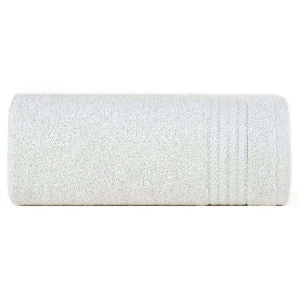 Ručník z měkké a savé bavlněné tkaniny s froté vazbou, zdobený barevným lemem ve stylu bastingu. Šířka: 30 cm, délka: 50 cm, barva: krémová, hmotnost: 550 GSM, složení: 70 % bambus, 30 % bavlna.Doplňkové parametry