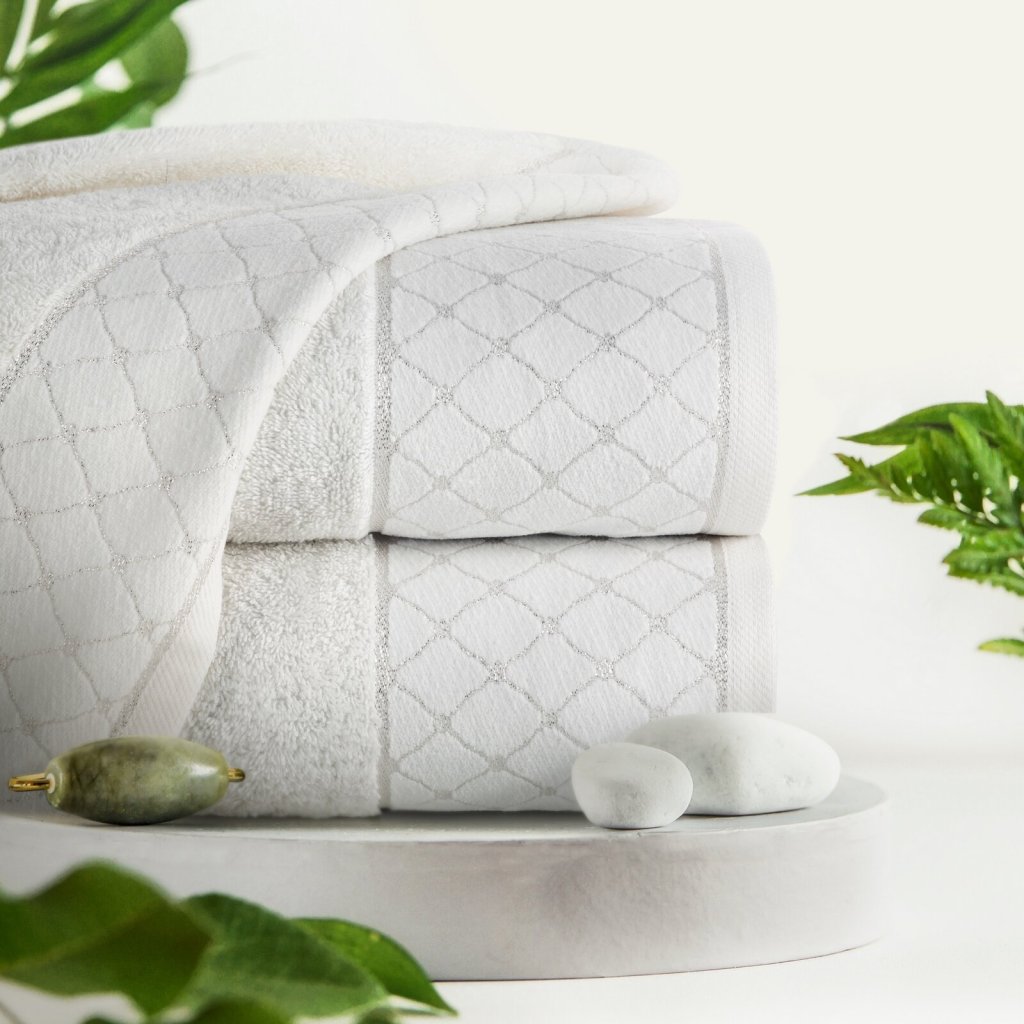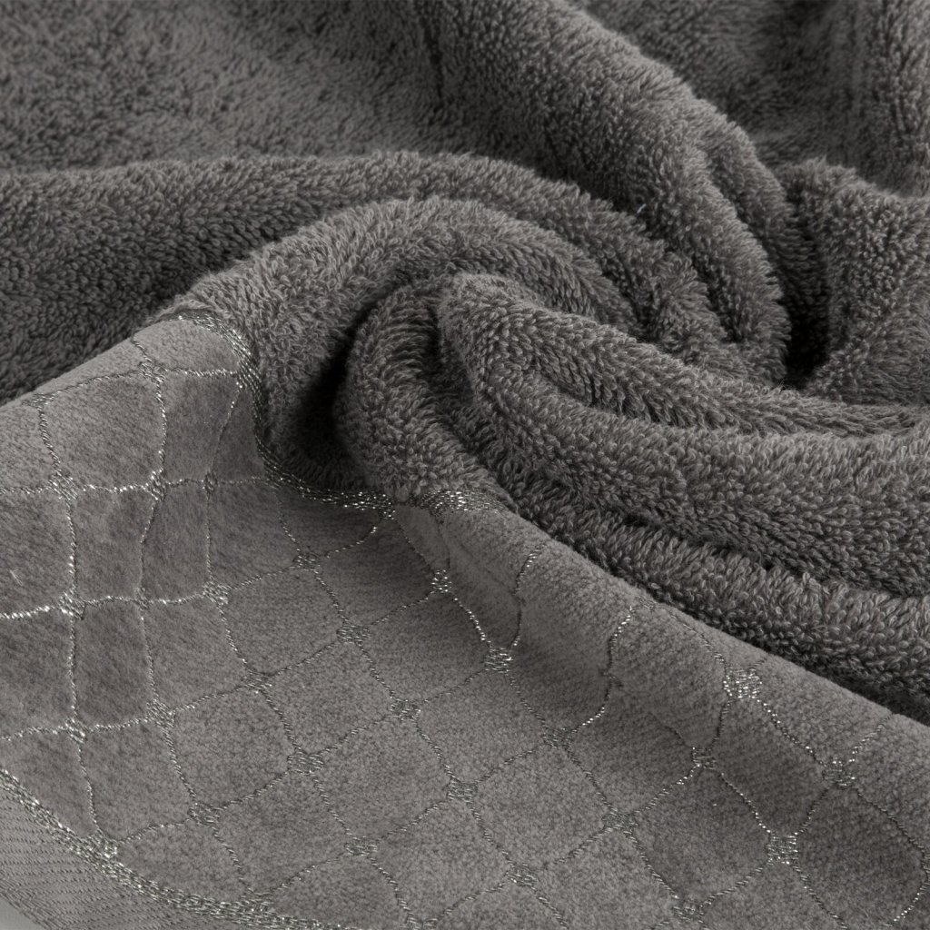 Ručník, šířka: 50 cm, délka: 90 cm, barva: šedá, hmotnost: 520 GSM, složení: 100% bavlna; dekorativní část: 80% bavlna, 20% polyester.Doplňkové parametry
