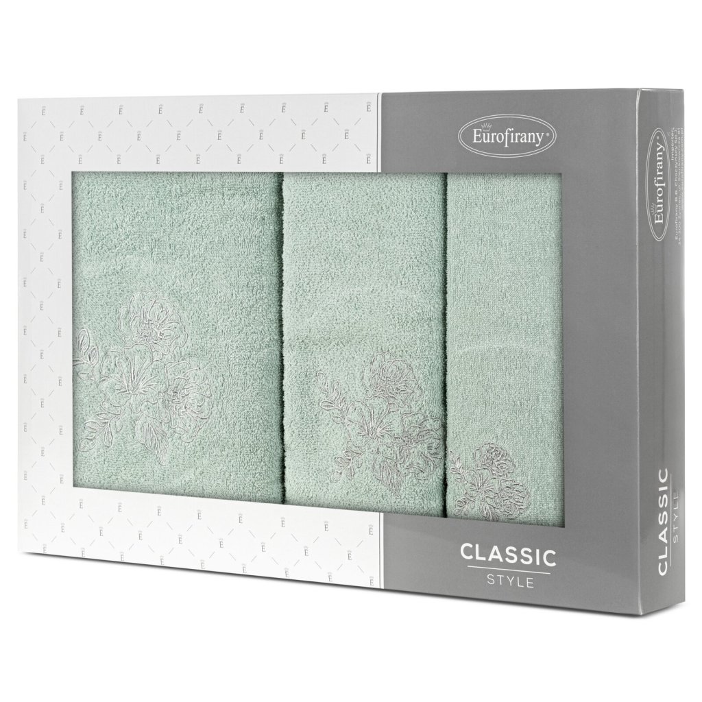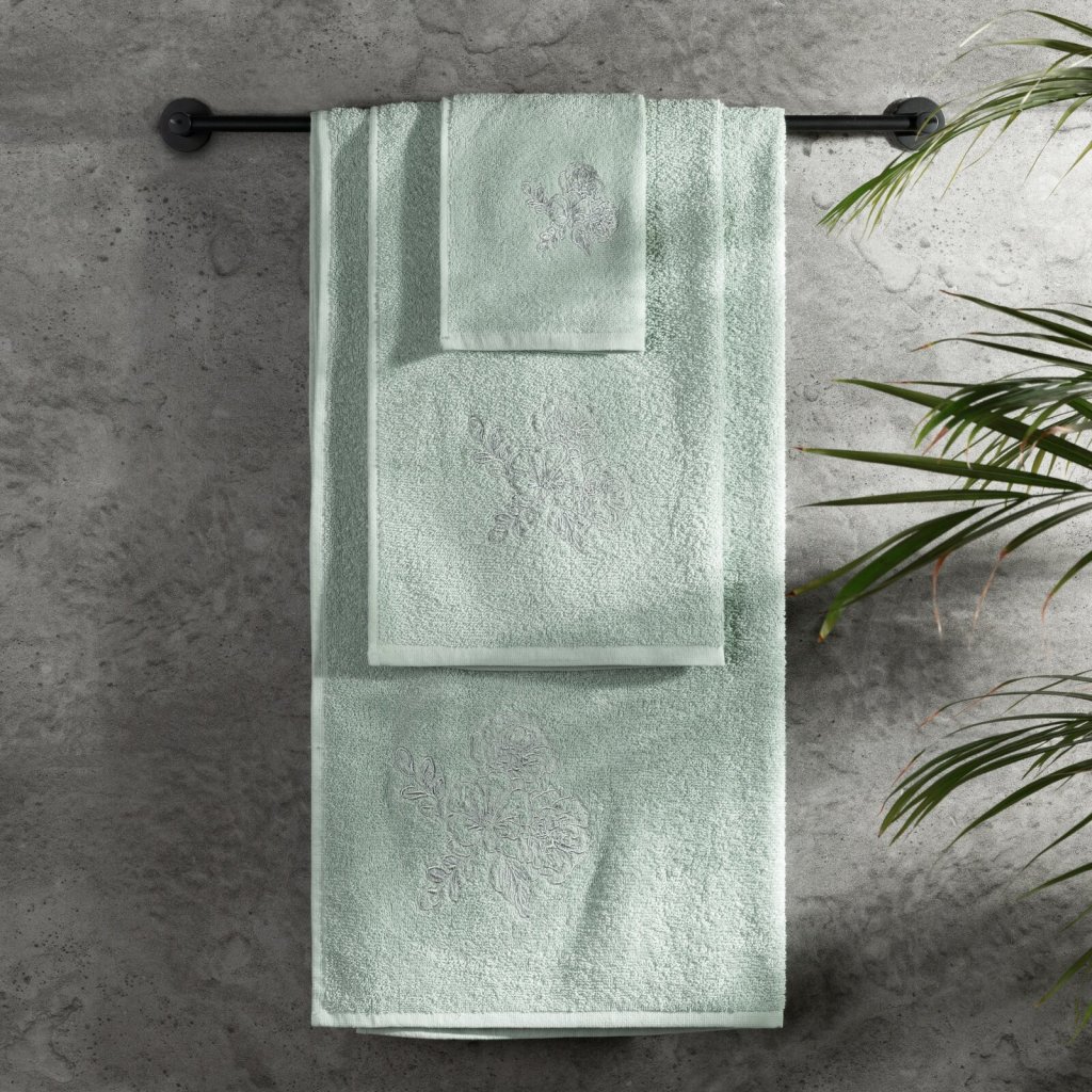 Elegantní sada ručníků MELANI s jemnou výšivkou růží je ideální volbou. Je vyrobena ze 100% bavlněného froté s certifikací OEKO-TEX® Standard 100. Ručníky vynikají měkkostí a vysokou savostí. Jemná výšivka a estetické balení v kartonové krabici činí z této sady originální dárek. Sada obsahuje 3 ks ručníků o rozměrech: 70x140 cm - 1 ks, 50x90 cm - 1 ks, 30x50 cm - 1 ks , barva: tmavě mátová, gramáž: 400 GSM, složení: 100% bavlna.Doplňkové parametry