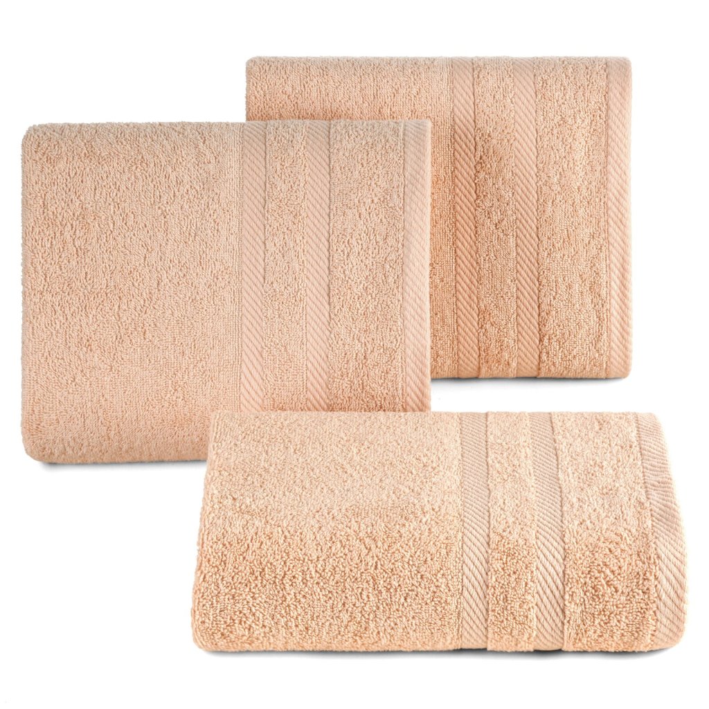 Jednobarevný ručník z měkké a savé bavlněné tkaniny s froté vazbou, zdobený barevným vínovým bastingem. Šířka: 100 cm, délka: 150 cm, barva: světle oranžová, gramáž: 500 GSM, složení: 100% bavlna.Doplňkové parametry