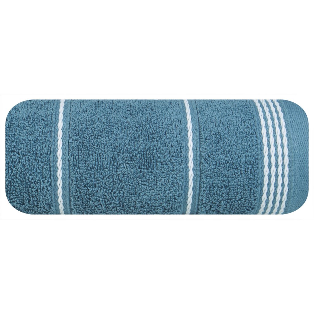 Měkký ručník ze savého bavlněného froté zdobený elegantním lemem. Šířka: 30 cm, délka: 50 cm, barva: tmavě modrá, gramáž: 500 GSM, složení: 100% bavlna.Doplňkové parametry