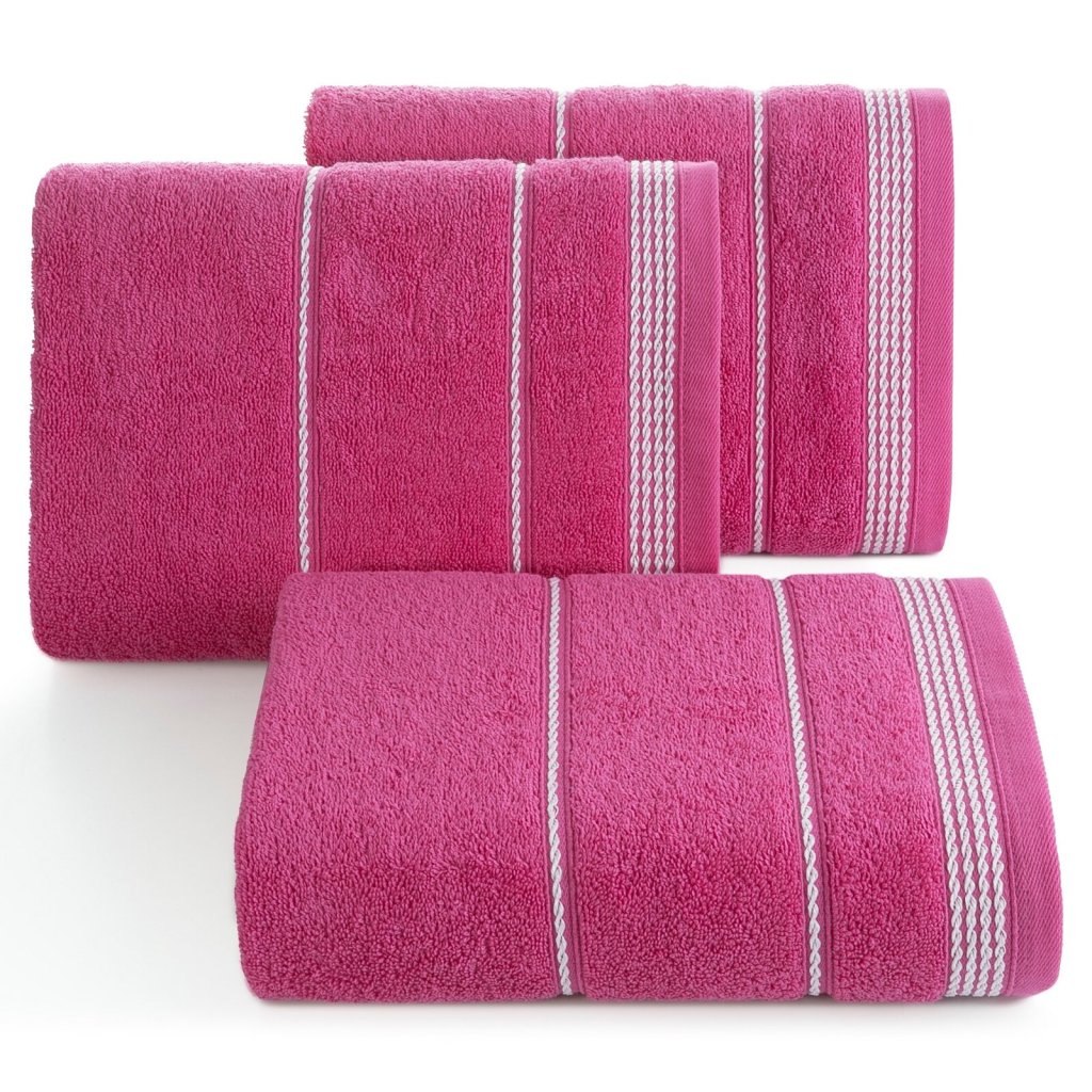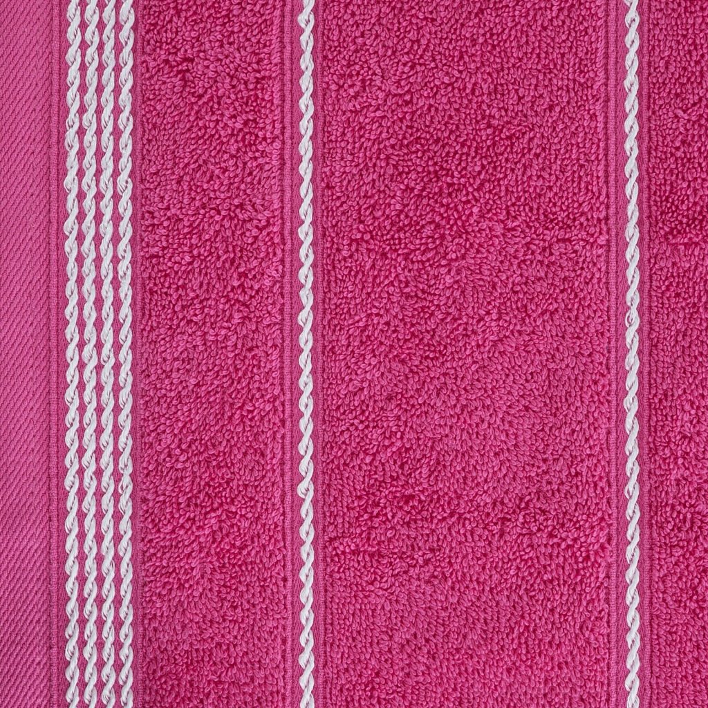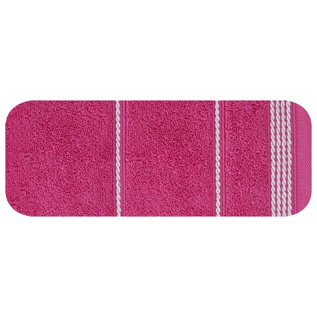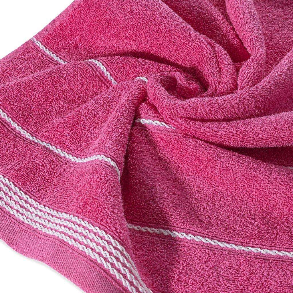 Měkký ručník ze savého bavlněného froté zdobený elegantním lemem. Šířka: 30 cm, délka: 50 cm, barva: růžová, hmotnost: 500 GSM, složení: 100% bavlna.Doplňkové parametry