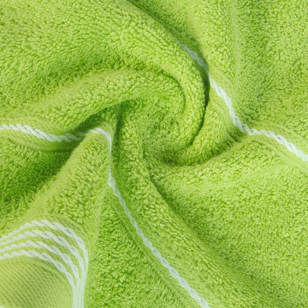 Měkký ručník ze savého bavlněného froté zdobený elegantním lemem. Šířka: 30 cm, délka: 50 cm, barva: zelená, hmotnost: 500 GSM, složení: 100% bavlna.Doplňkové parametry