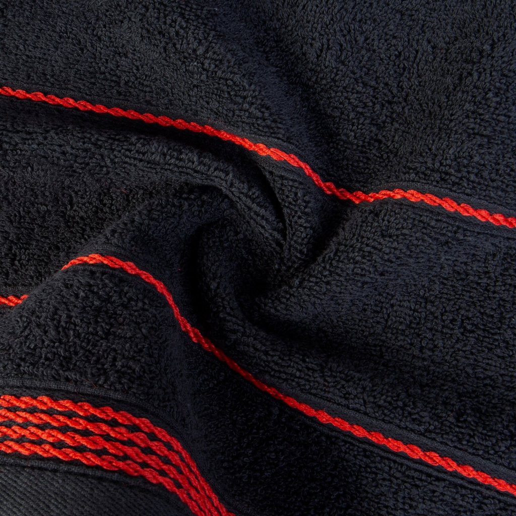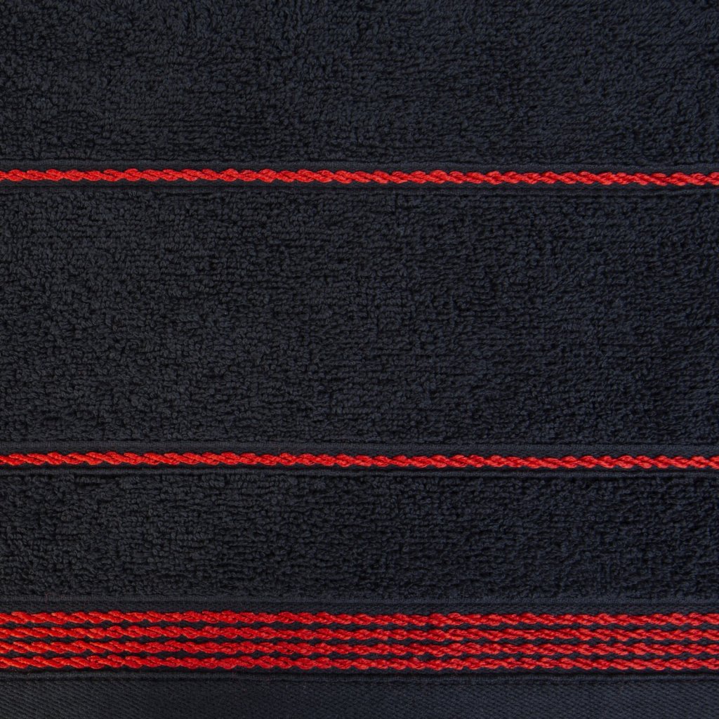 Měkký ručník ze savého bavlněného froté zdobený elegantním lemem. Šířka: 30 cm, délka: 50 cm, barva: černá, hmotnost: 500 GSM, složení: 100% bavlna.Doplňkové parametry