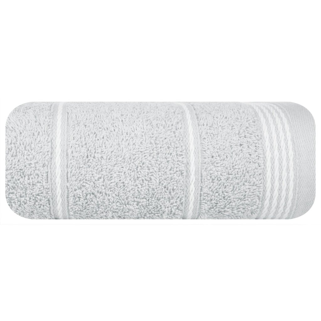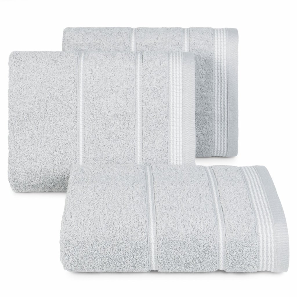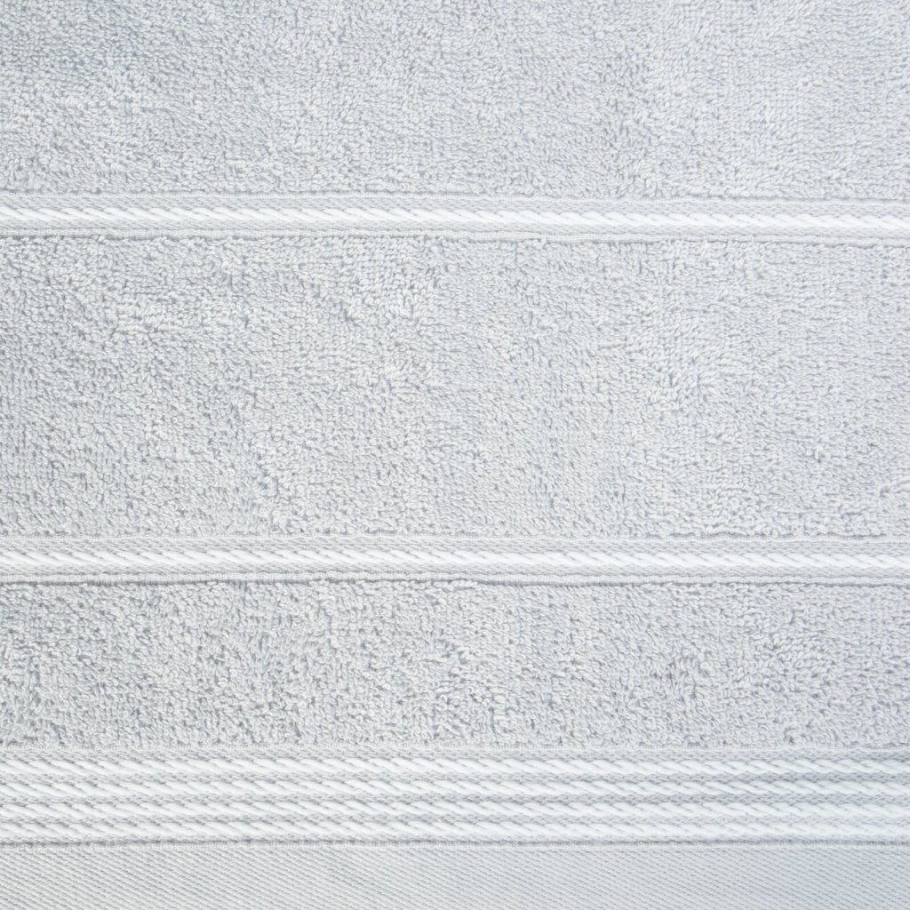Měkký ručník ze savého bavlněného froté zdobený elegantním lemem. Šířka: 30 cm, délka: 50 cm, barva: stříbrná, gramáž: 500 GSM, složení: 100% bavlna.Doplňkové parametry