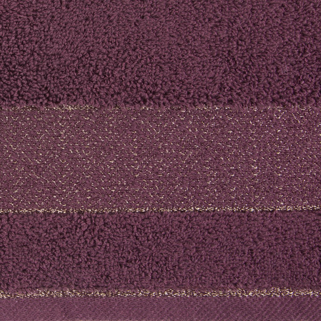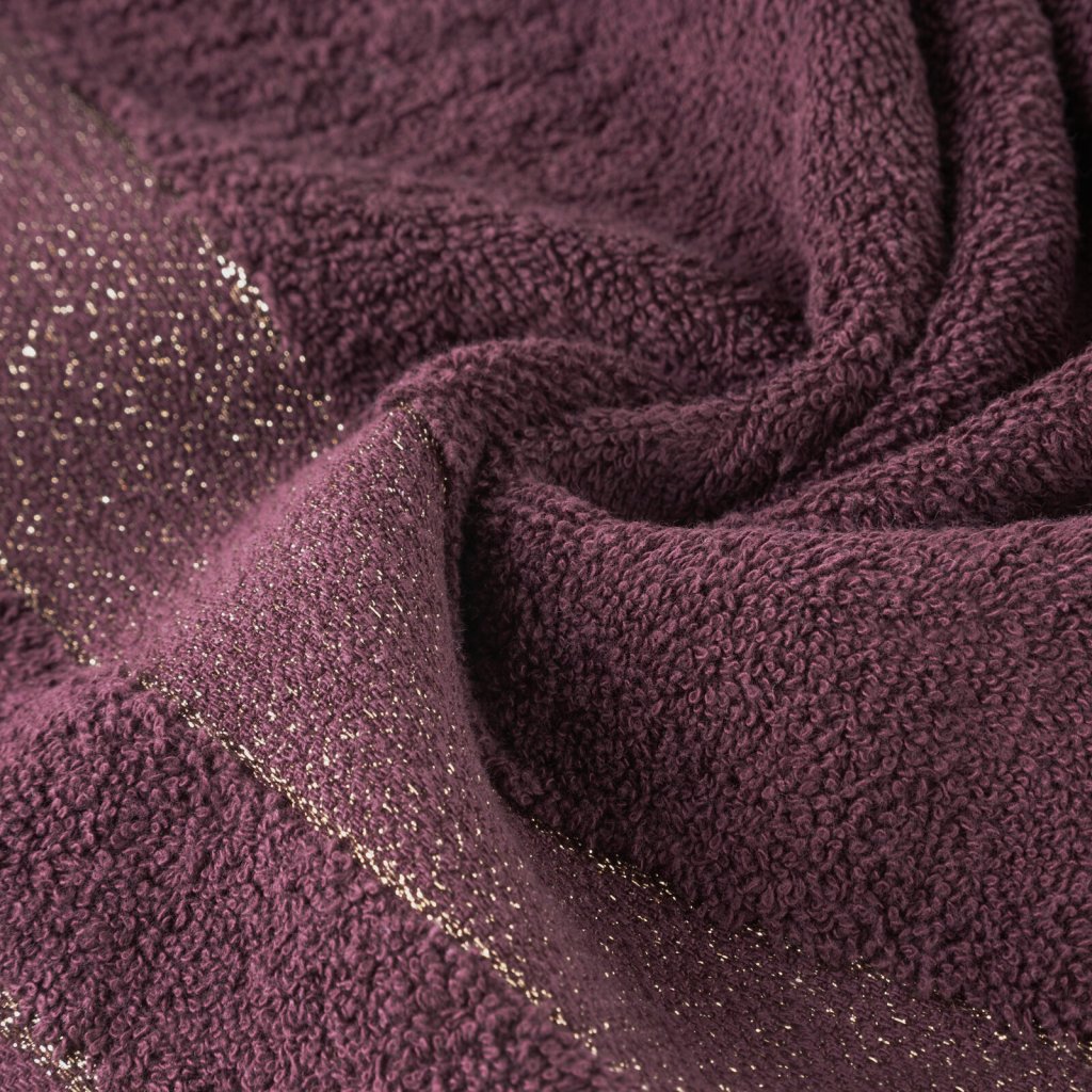 Ručník z měkké a savé bavlněné tkaniny s froté vazbou, zdobený barevným lemem ve stylu bastingu. Šířka: 30 cm, délka: 50 cm, barva: vínová, gramáž: 500 GSM, složení: 100% bavlna; ozdobná část: 50% bavlna, 50% polyester.Doplňkové parametry