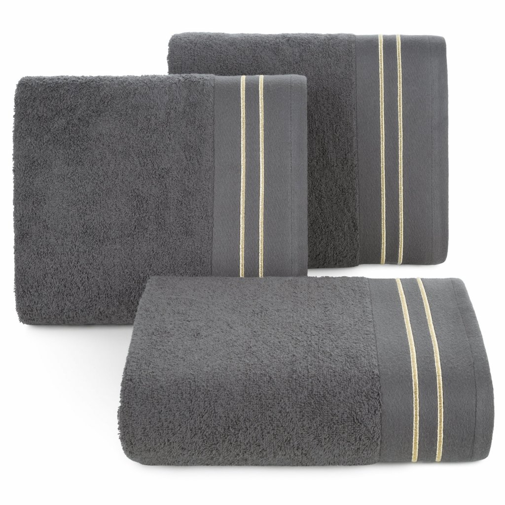 Ručník se zlatou výšivkou, šířka: 50 cm, délka: 90 cm, barva: tmavě šedá, hmotnost: 500 GSM, složení: 100% bavlna; ozdobná část: 100% polyester.Doplňkové parametry