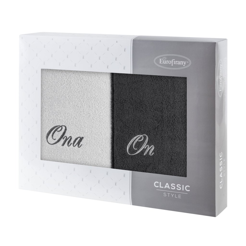 Sada ručníků v kontrastních barvách zdobených osobními vyšívanými nápisy SHE a HE je skvělým nápadem na praktický a krásný dárek pro pár k jakékoli příležitosti. Ručníky jsou vyrobeny z měkké a savé bavlny, příjemné na dotek a velmi odolné. Díky vysoké kvalitě ručníků a estetické výšivce budou pozoruhodnou památkou po mnoho let. Sada je zabalena v estetické dárkové krabičce. Certifikováno podle normy OEKO-TEX 100. Velikost 2 ručníků: 50x90 cm, barva: stříbrná a tmavě šedá, gramáž: 400 GSM, složení: 100% bavlna.Buďte první, kdo napíše příspěvek k této položce.
