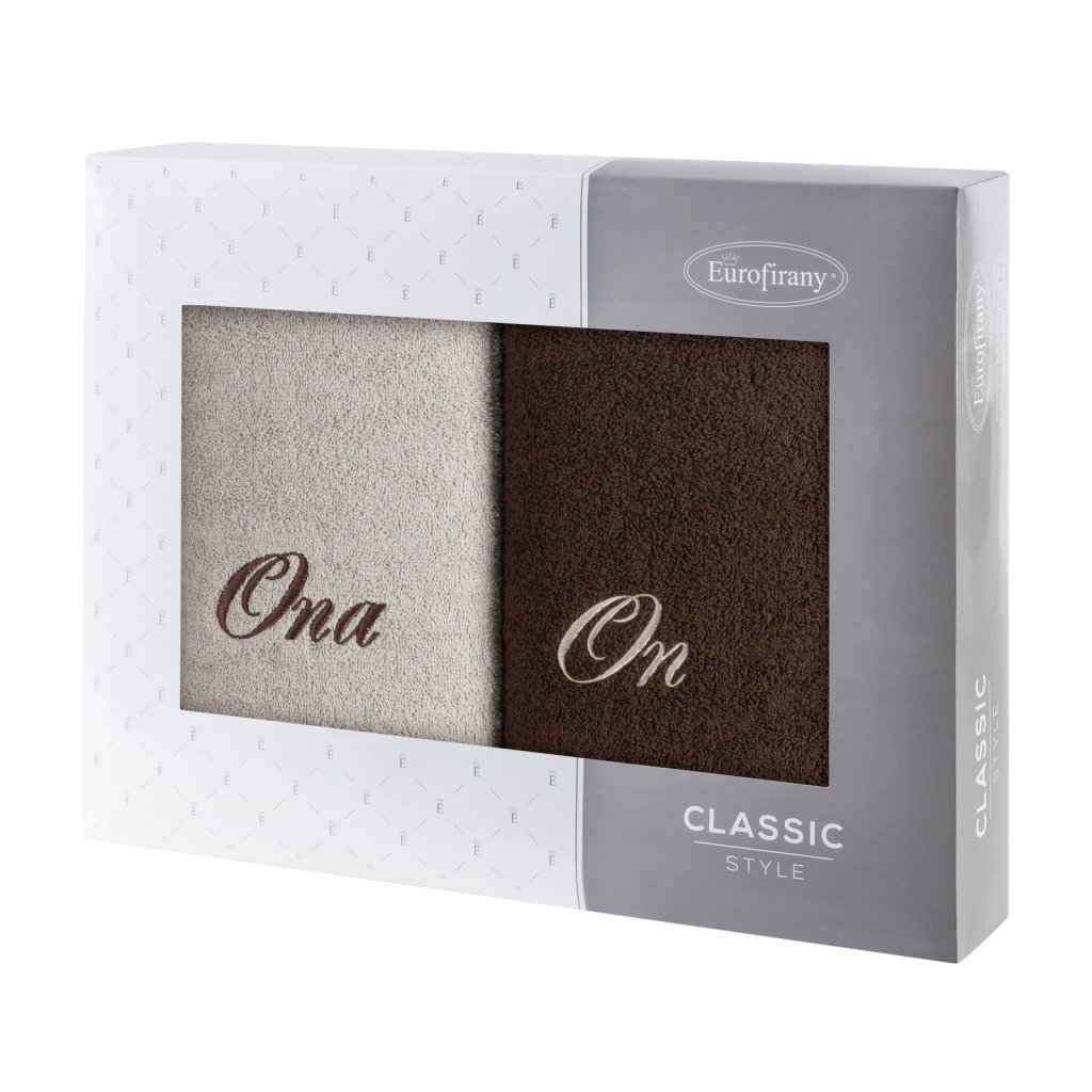 Sada ručníků v kontrastních barvách zdobených osobními vyšívanými nápisy SHE a HE je skvělým nápadem na praktický a krásný dárek pro pár k jakékoli příležitosti. Ručníky jsou vyrobeny z měkké a savé bavlny, příjemné na dotek a velmi odolné. Díky vysoké kvalitě ručníků a estetické výšivce budou pozoruhodnou památkou po mnoho let. Sada je zabalena v estetické dárkové krabičce. Sada obsahuje 2 ks ručníků o rozměrech: 70x140 cm, barva: béžová a hnědá, gramáž: 400 GSM, složení: 100% bavlna.Buďte první, kdo napíše příspěvek k této položce.